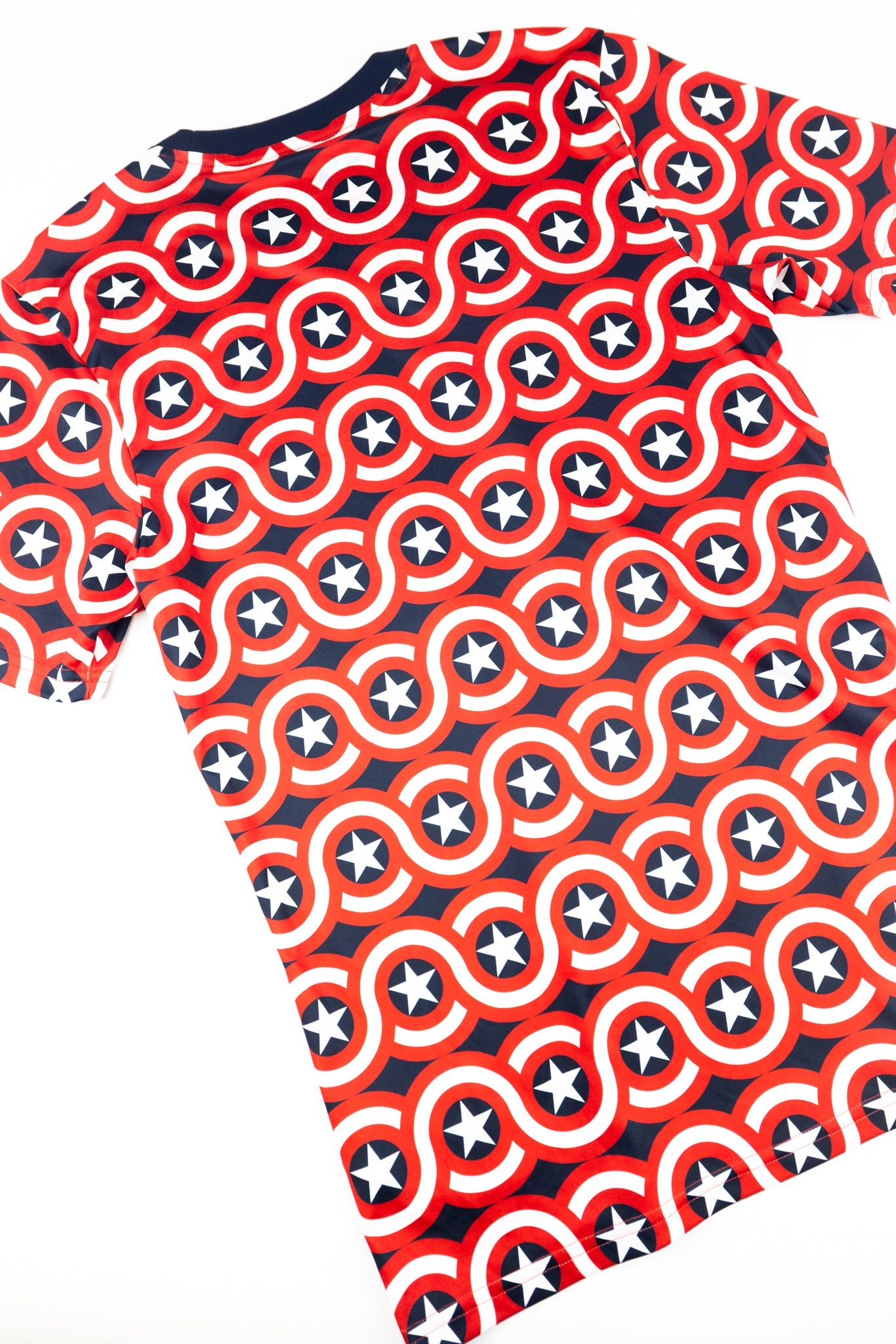 Marvel X MLS collab jersey worn pre-match by Houston Dynamo during the 2023 MLS season. An incredible 'Americana' jersey worn by multiple MLS clubs.