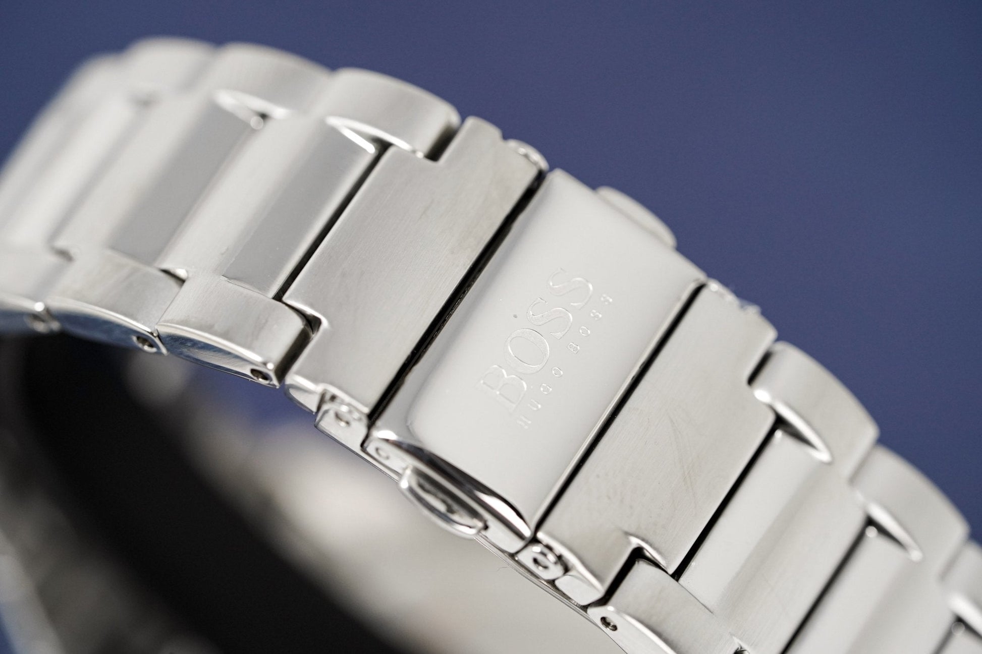 Stainless Steel Polished Bracelet with Stainless Steel Push Button Deployment Clasp.