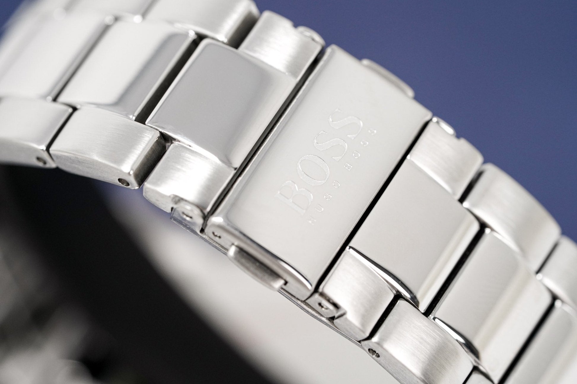 Stainless Steel Bracelet with Stainless Steel Push Button Deployment Clasp.
