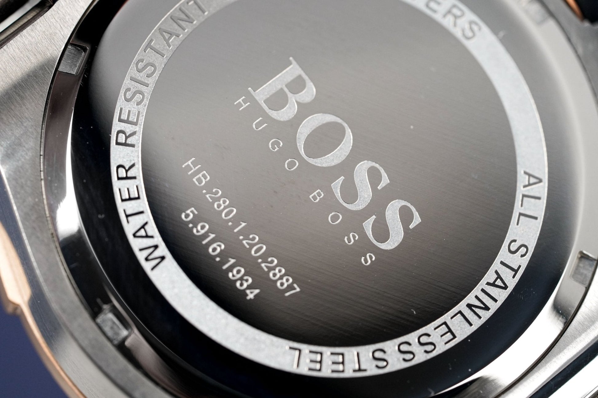 45mm Stainless Steel Case. Scratch Resistant Mineral Crystal. Rose Gold PVD Plated Steel Bezel.