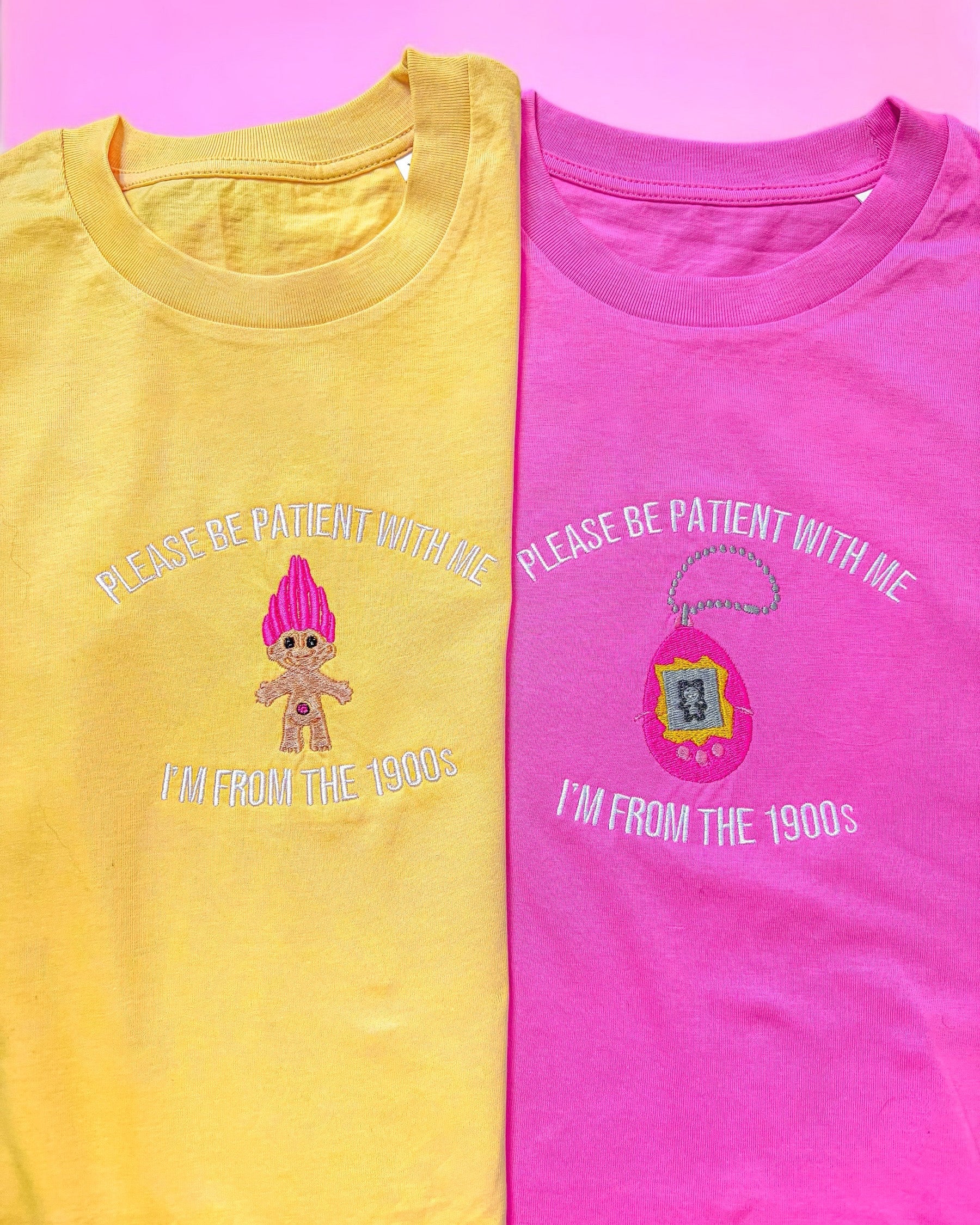 Channel your fiercest 90s childhood nostalgia with this troll-core embroidered tee - think scrunchies, neon windbreakers, and pastel troll dolls all day. The I’m From the 1900s Troll T-shirt is for the ones who remember collecting Troll dolls with hair that defied gravity.