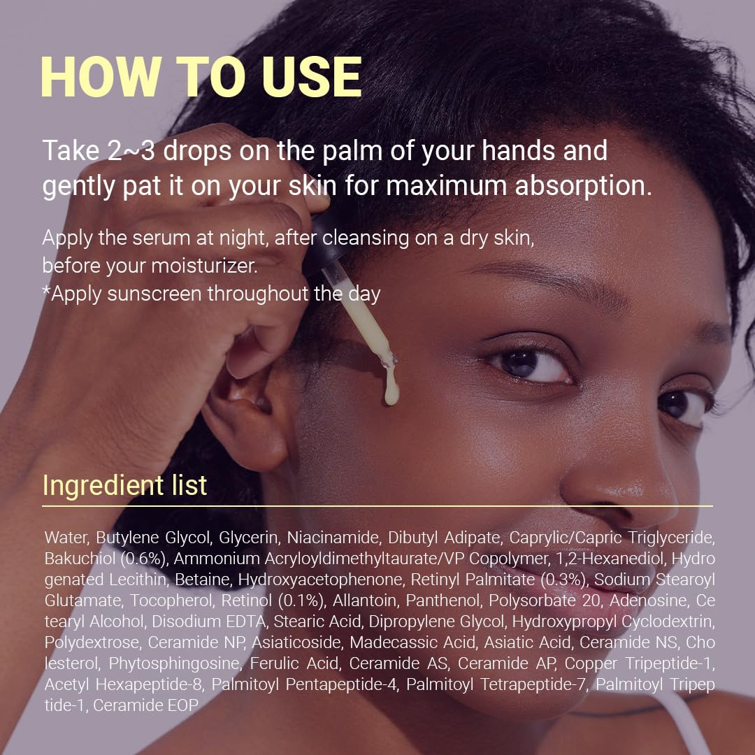 Turn back visible signs of aging with the ISNTREE Hyper Retinol EX 1.0 Serum. Powered by 1% retinol, 0.3% retinyl palmitate, and 0.6% bakuchiol, this advanced formula works to minimize wrinkles and fine lines while improving skin texture and resilience. A blend of five peptides and five ceramides reinforces the skin barrier, locks in moisture, and supports elasticity. Enriched with TECA (Centella Asiatica extract), it helps calm inflammation and protects sensitive skin. With a lightweight, fast-absorbing milky texture, this serum is an effective addition to any nighttime routine for firmer, smoother, and youthful-looking skin.