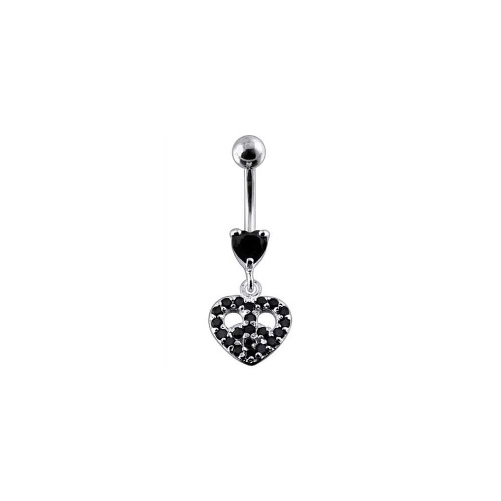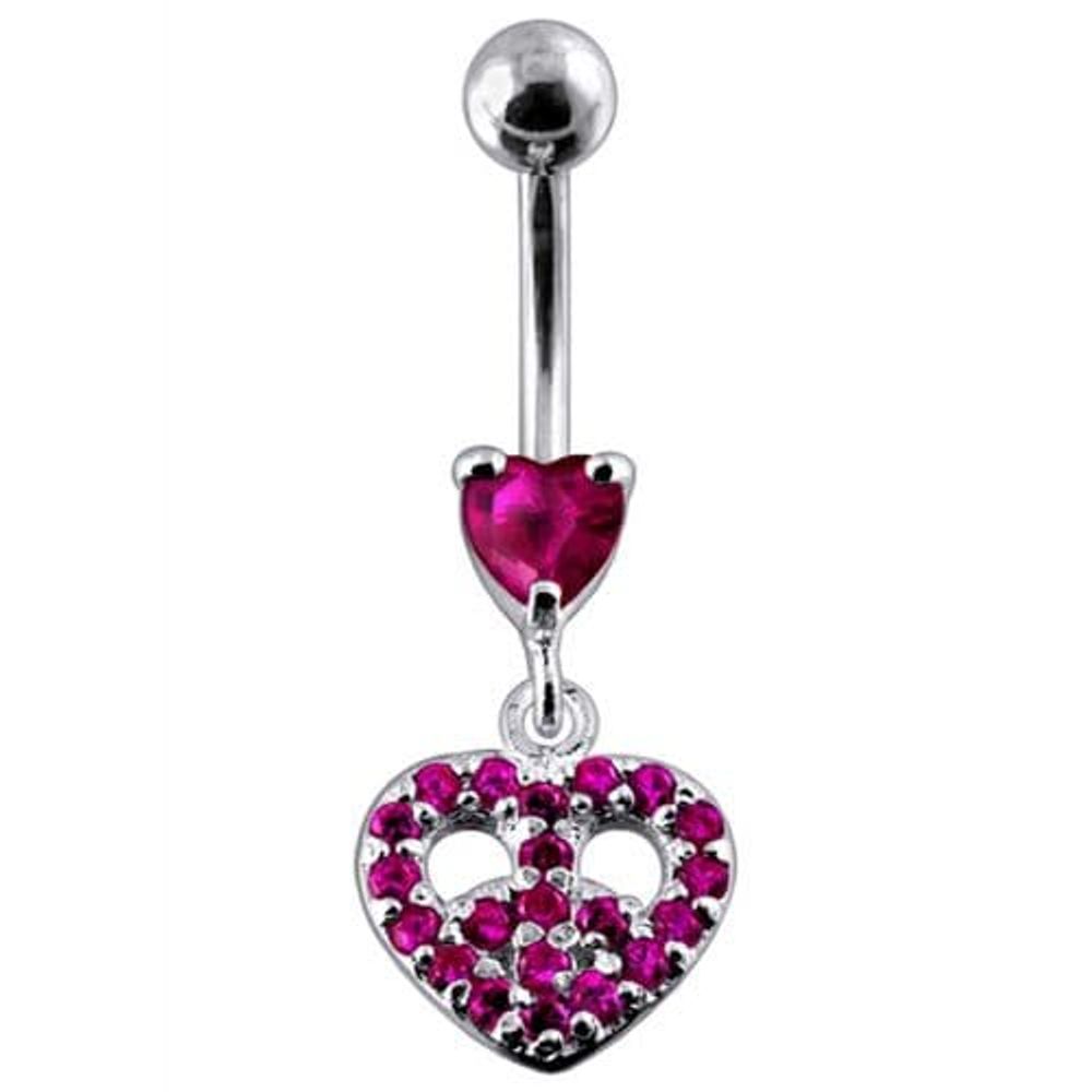 Jeweled Fancy Heart Shape Silver Dangling SS Bar Curved Belly Ring