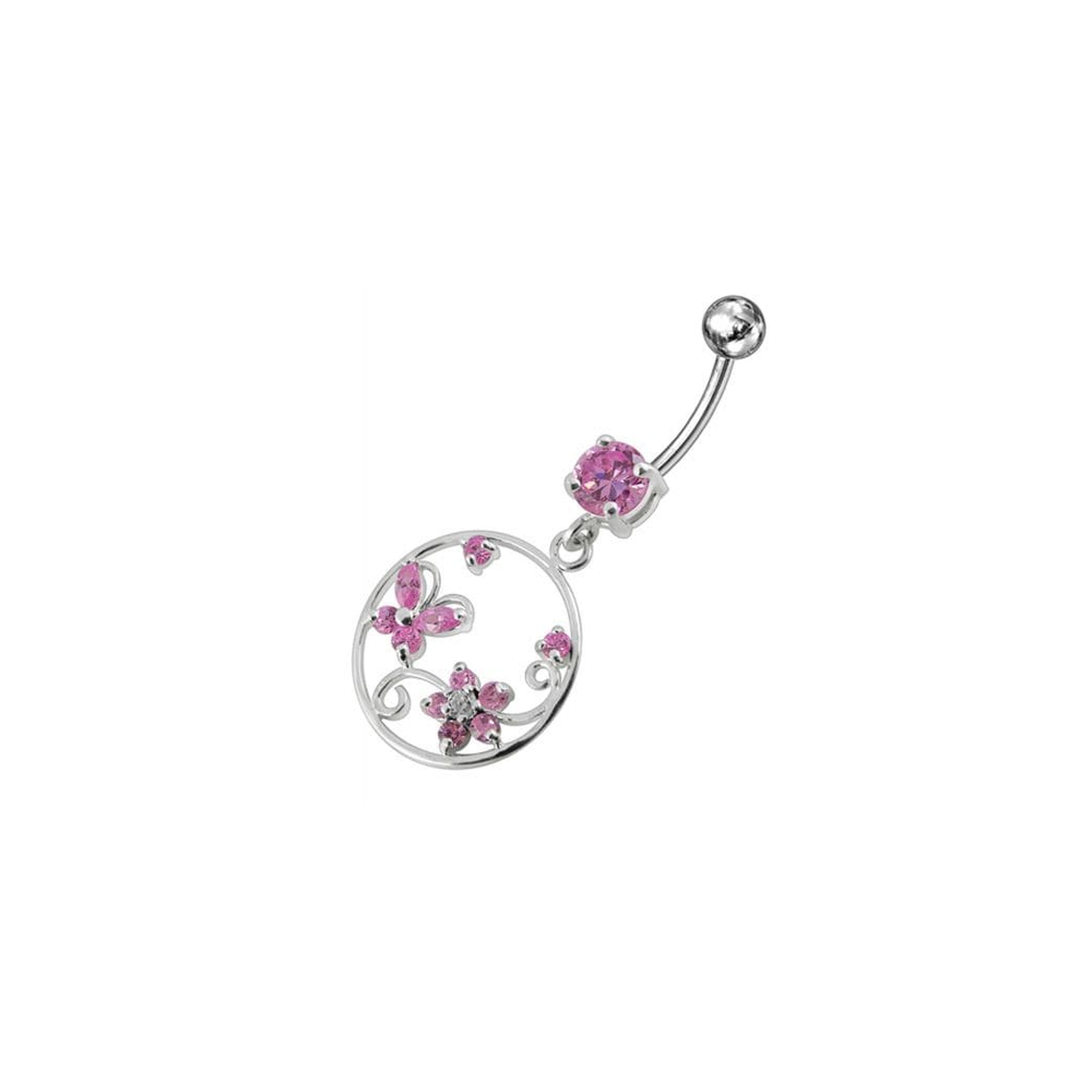 Jeweled Fancy Silver Dangling SS Curved Bar Belly Ring
