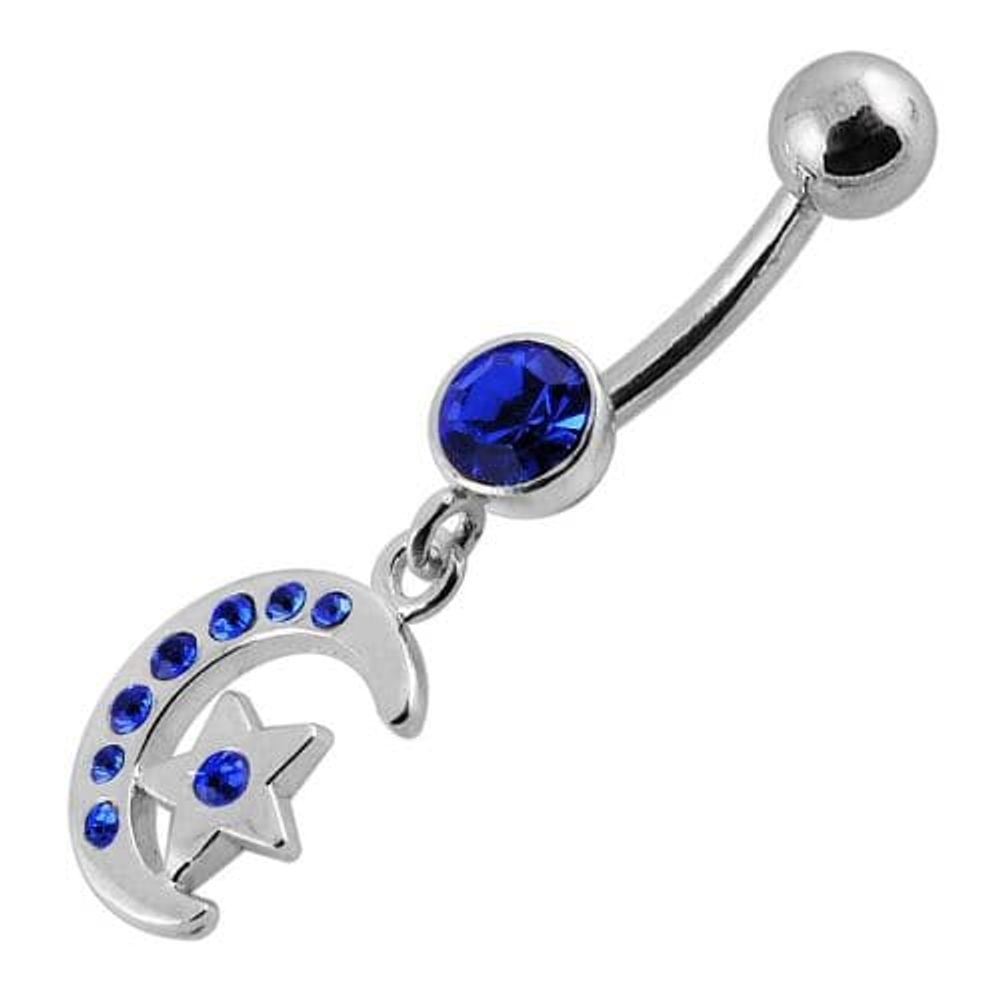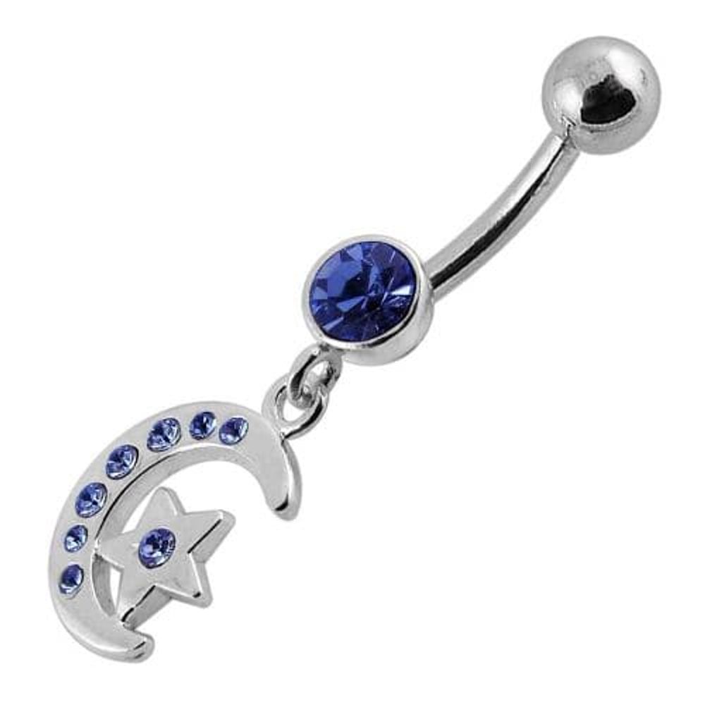 Jeweled Star Moon Fancy Silver Dangling SS Bananna Bar Belly Ring