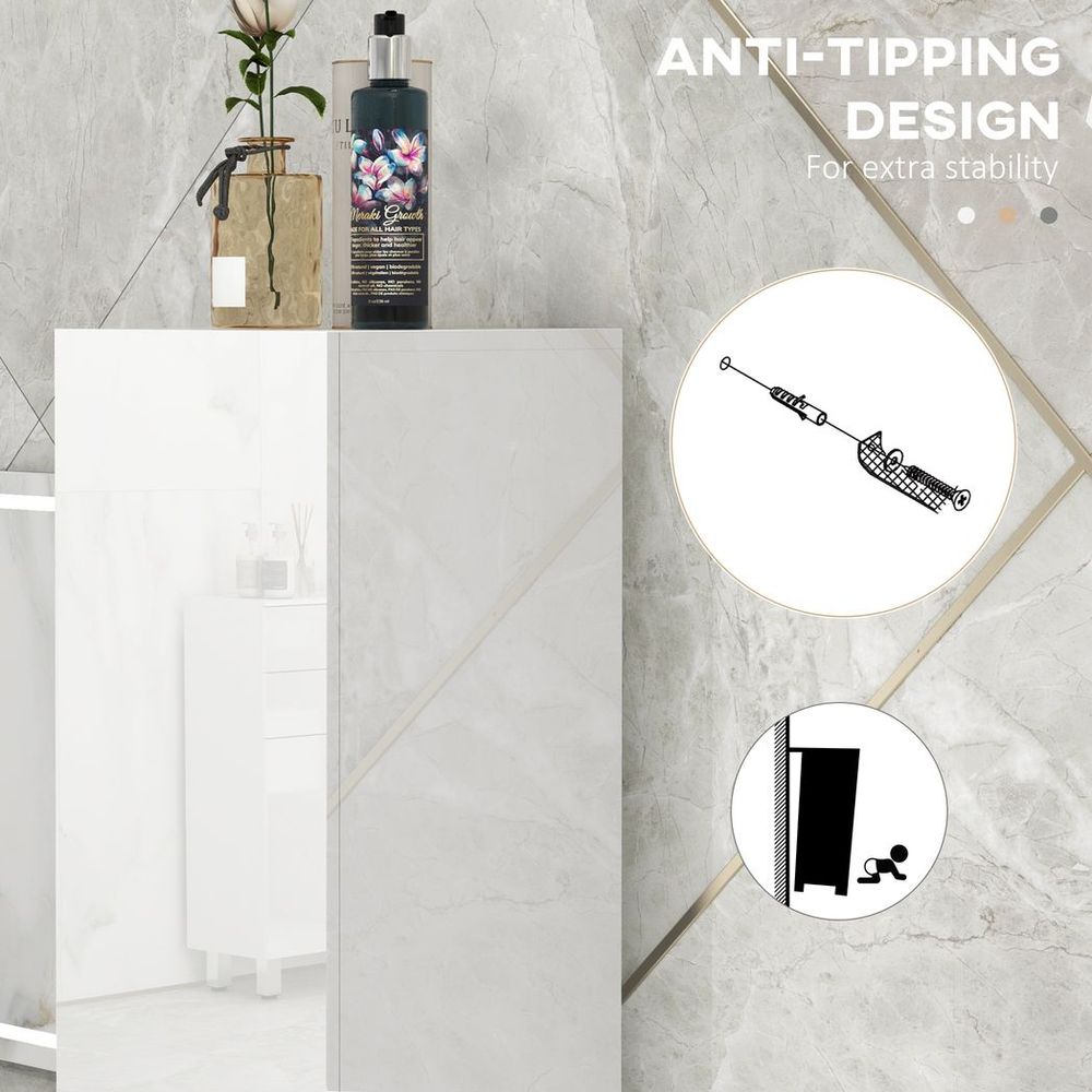 kleankin High Gloss Bathroom Floor Cabinet Storage Cupboard with Doors