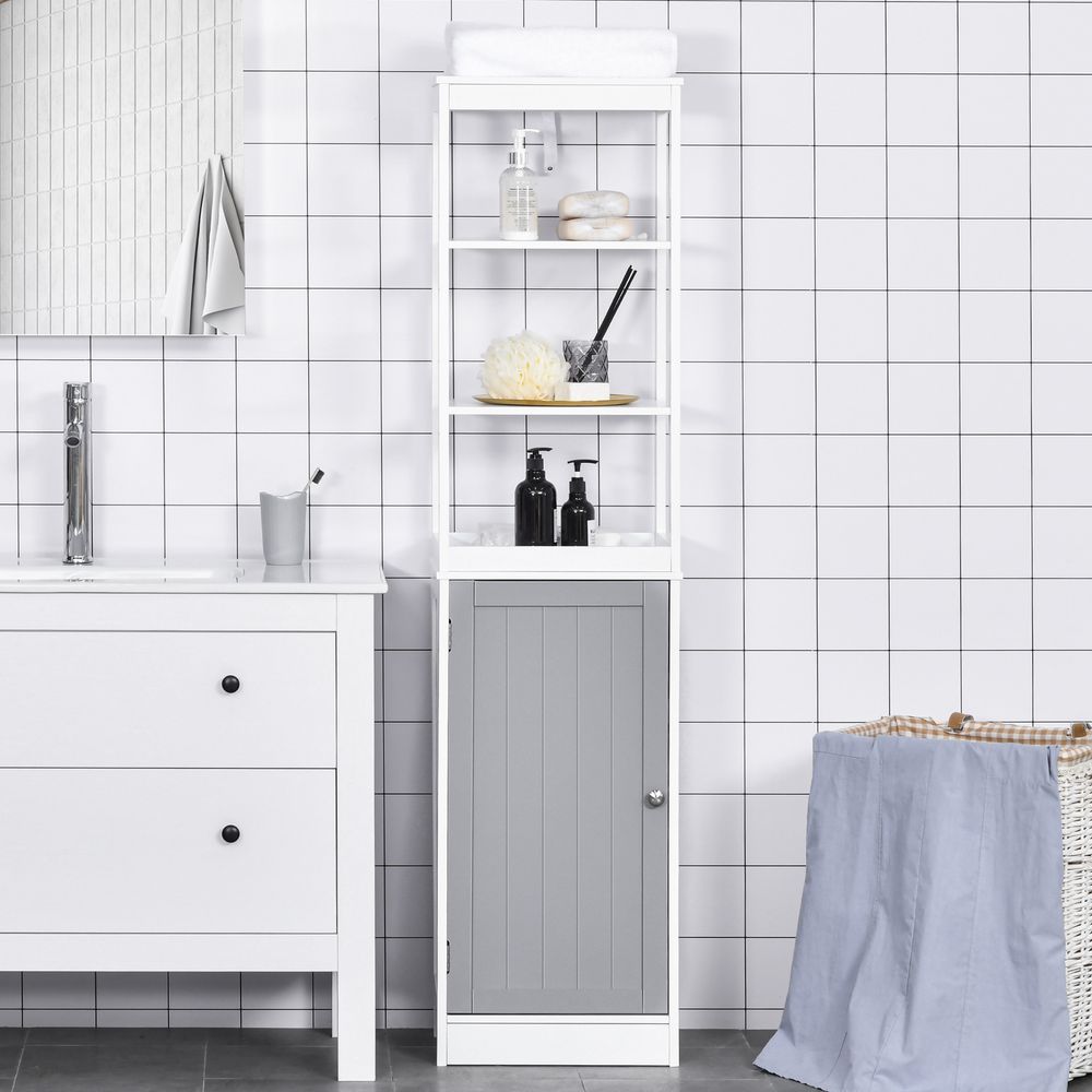 kleankin Tall Bathroom Cabinet Free Standing Slimline Cupboard Tallboy Unit Storage Organiser for Bathroom, Living Room, Kitchen