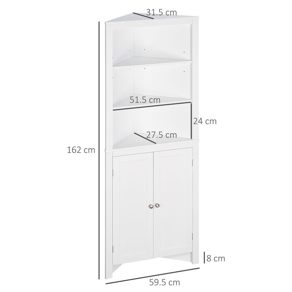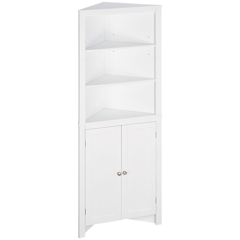 kleankin Triangle Bathroom Cabinet, Corner Bathroom Storage Unit with Cupboard and 3-Tier Shelves, Free Standing, White