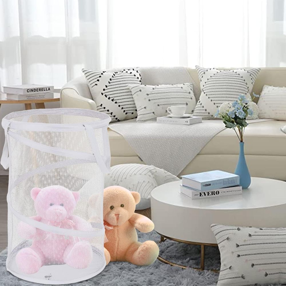 Large Collapsible Laundry Basket Foldable Mesh Pop Up Hamper with Handles for Laundry Room, Bath, Kids Room, College Dorm, Travel, Storage Organizer White