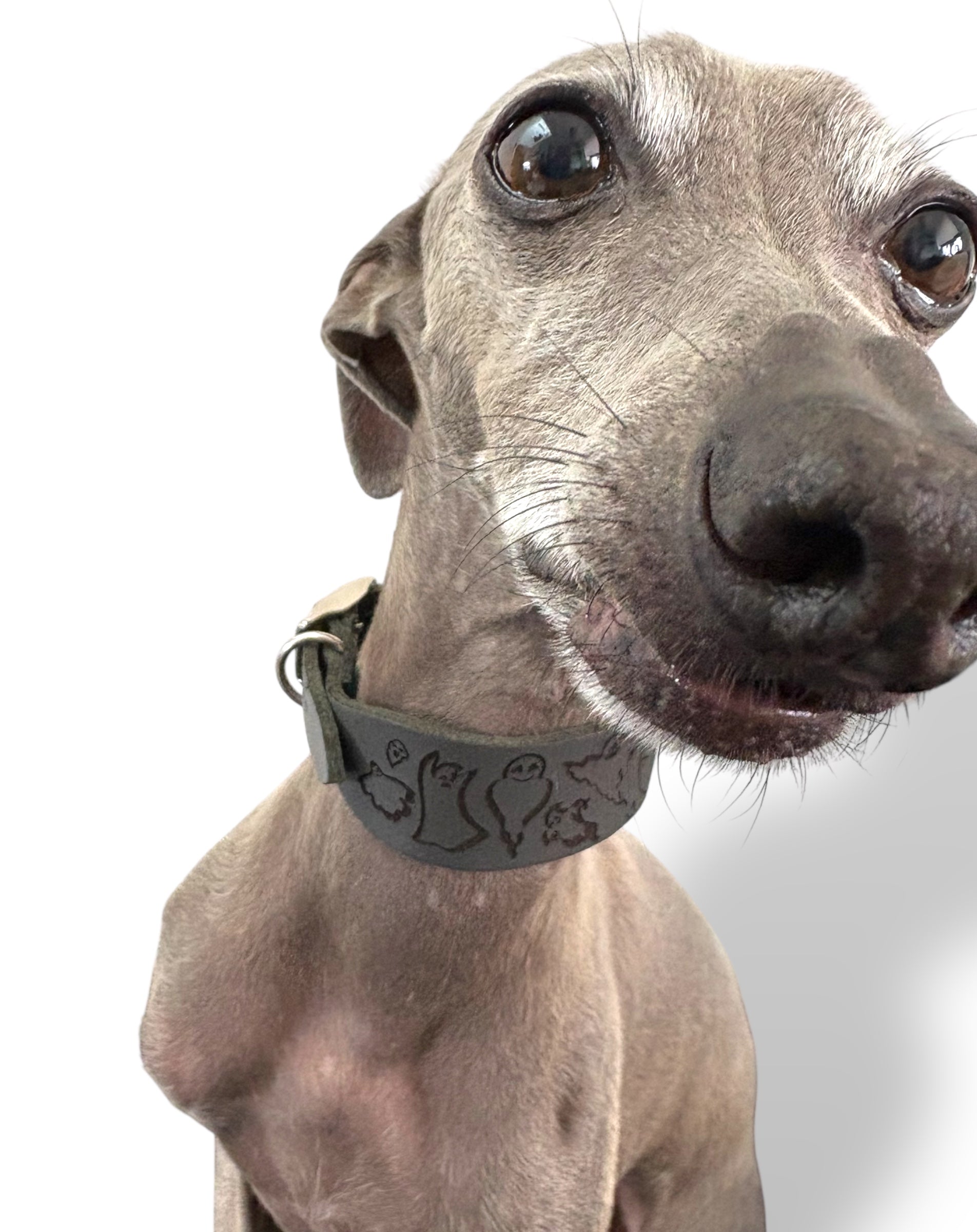 Introducing our limited edition Halloween leather collar range featuring a range of real leather collars produced by small UK businesses and finished off with a laser engraved design by us here at Iggy Suits HQ.