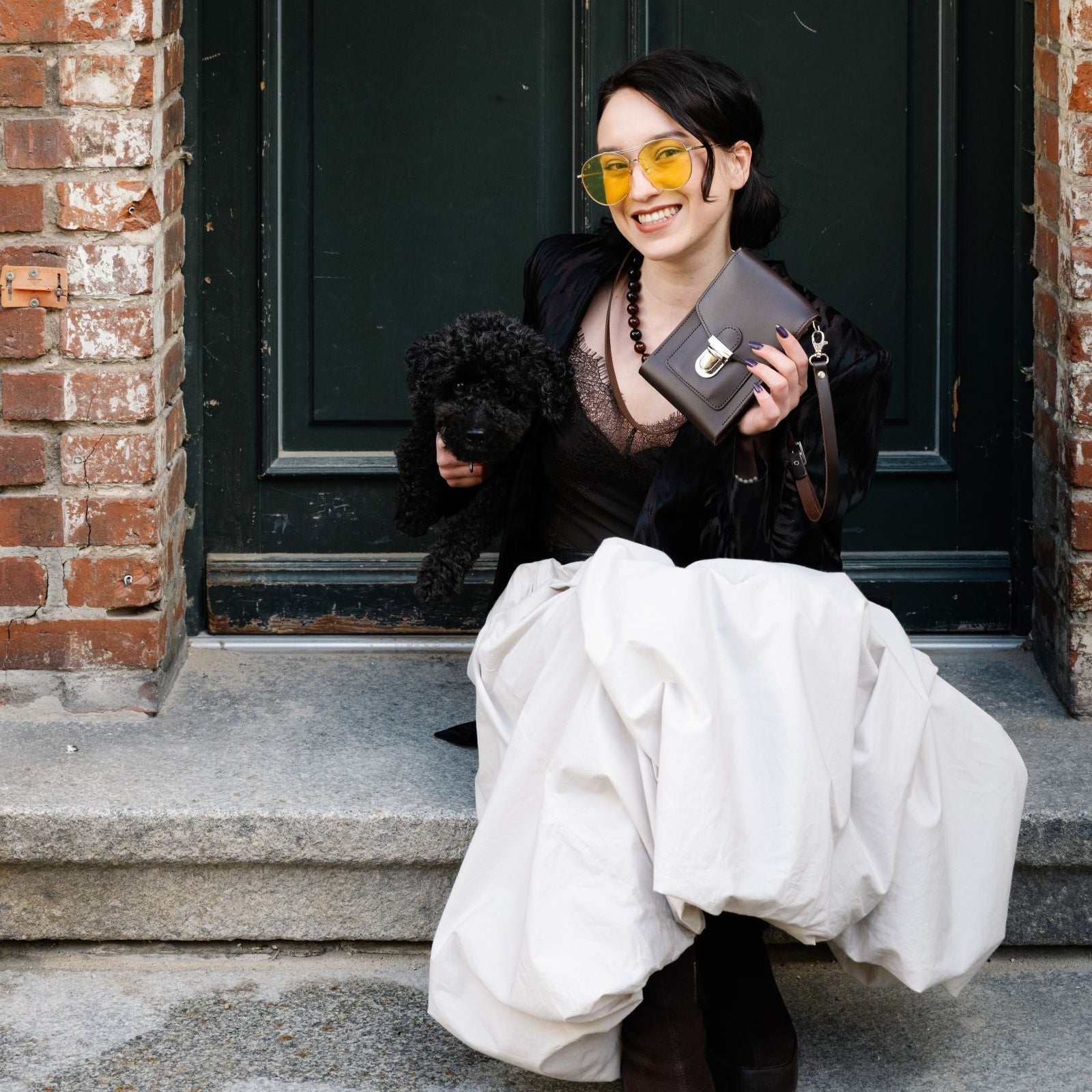 Carry your phone and card in style with a slip in pocket on the front and back. The main compartment is closed behind a convenient push lock and the detachable crossbody strap is adjustable and can be removed if needed.
