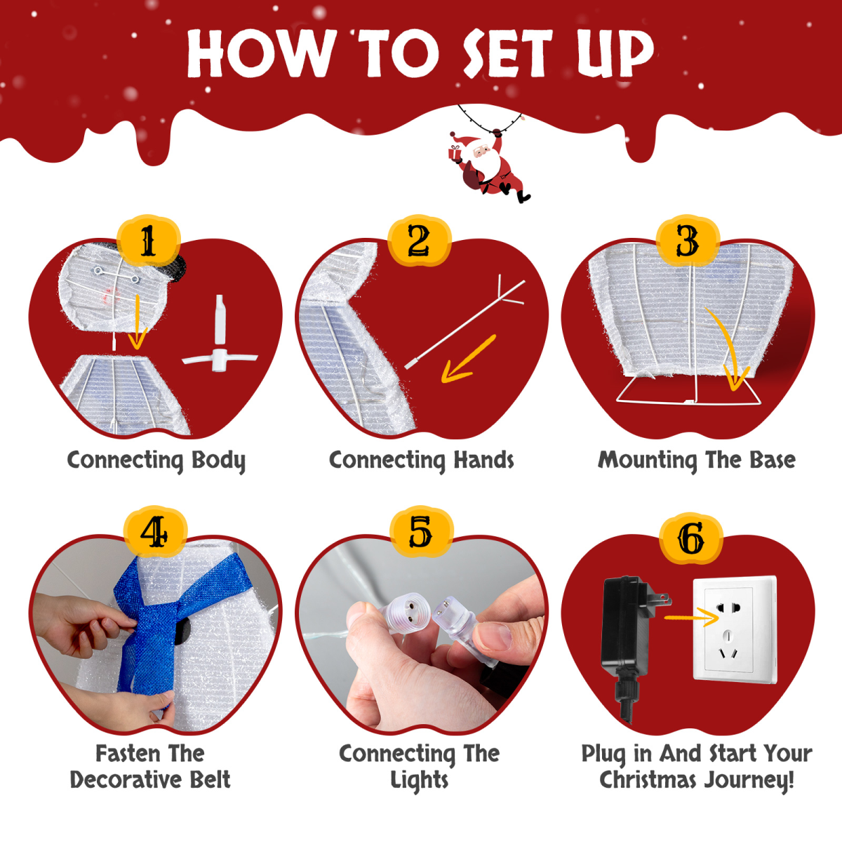 3. Easy Assembly and Storage: This collapsible Xmas decoration can be set up in minutes, allowing you to enjoy your festive display without hassle. Once the holiday season is over, the snowmen easily fold down into a compact size for convenient storage.