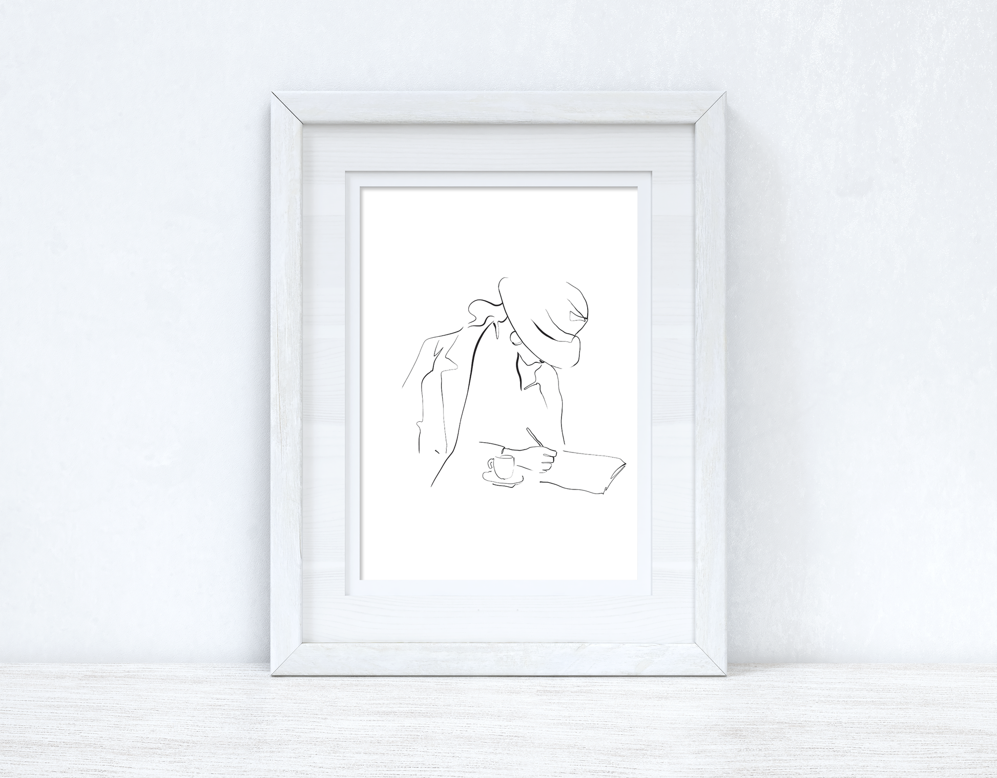 Line Work Woman Cafe Simple Home Bedroom Dressing Room Wall Decor Print