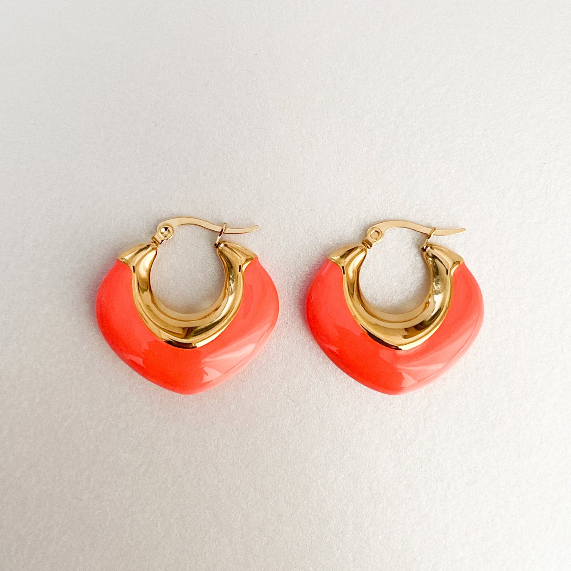 Add some drama to your look with these Lola Luxe 18k Gold Plated Coral Hoops. Their bright coral hue will be sure to turn heads, so put these on and you won't be able to help but bask in all the attention you're getting.