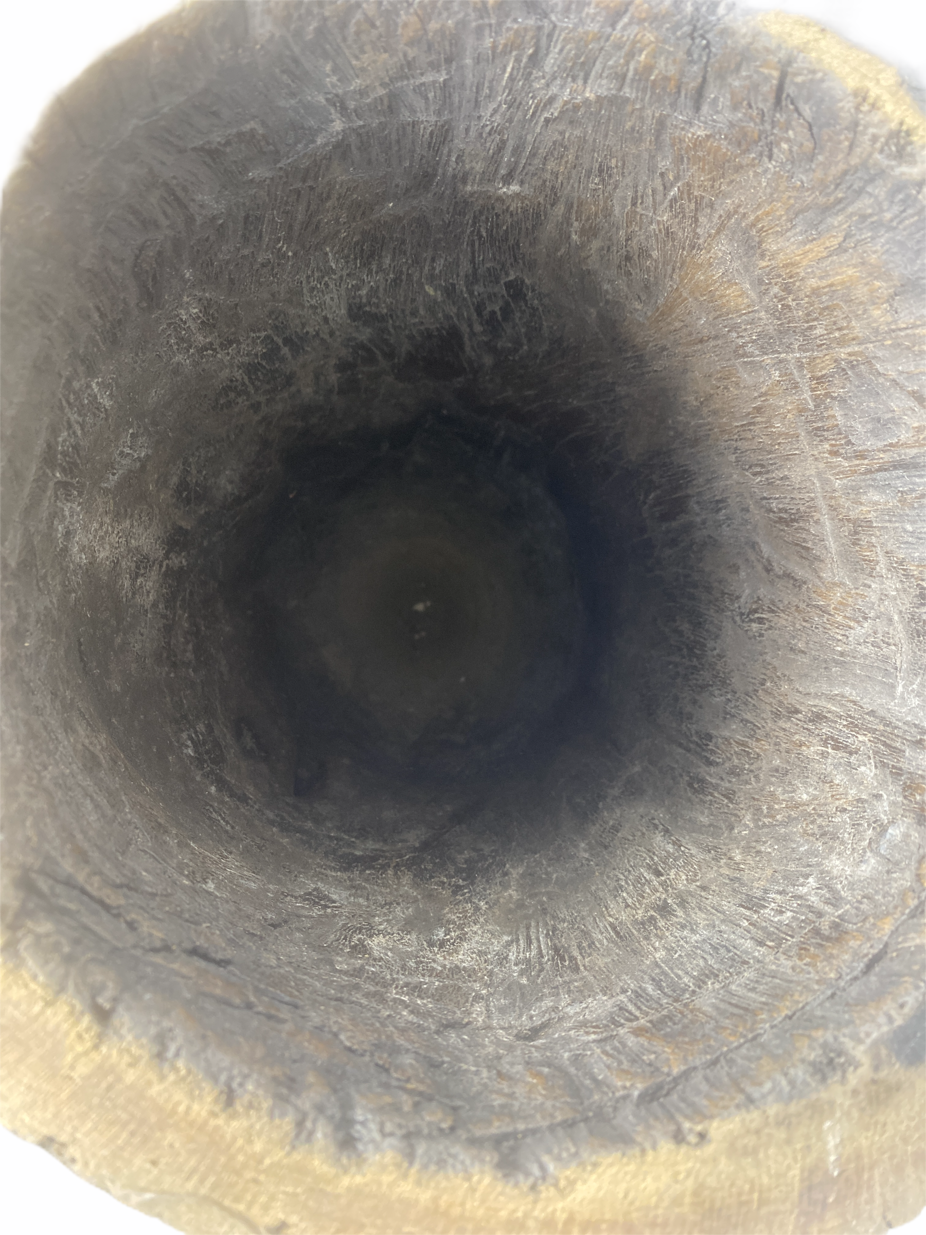 African grain stompers are made when they hollow out tree trucks and large branches to create these which are then used to grind grain. They can be used as planters or turn them upside down to be used as stools/side tables or a piece of sculpture.