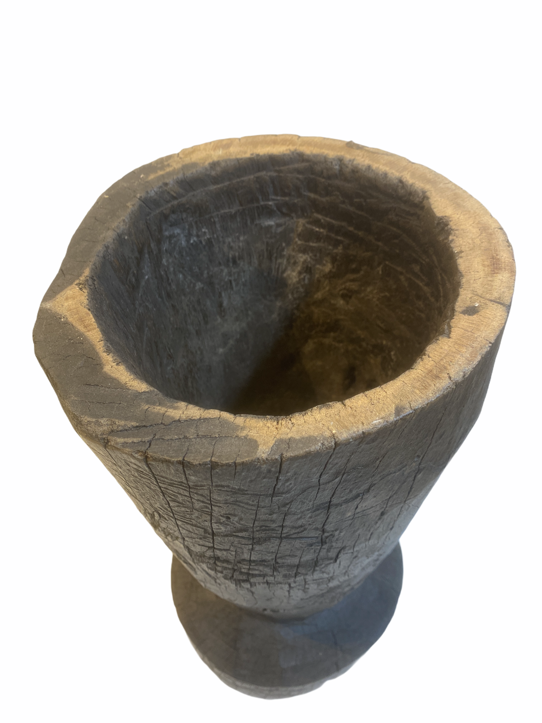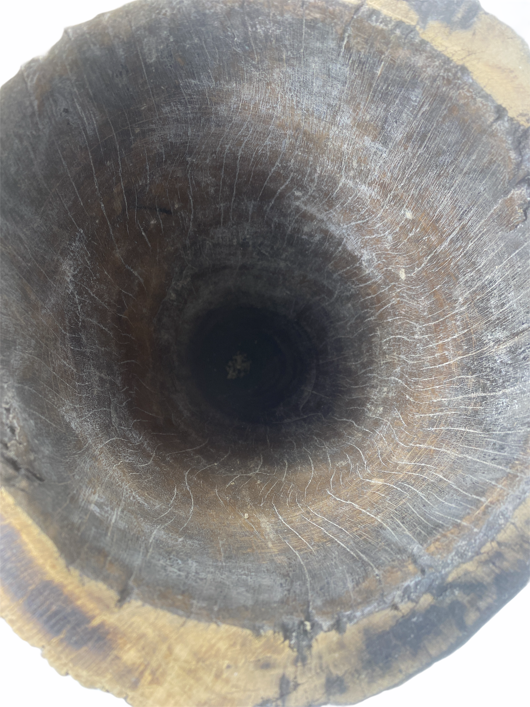 African grain stompers are made when they hollow out tree trucks and large branches to create these which are then used to grind grain. They can be used as planters or turn them upside down to be used as stools/side tables or a piece of sculpture.