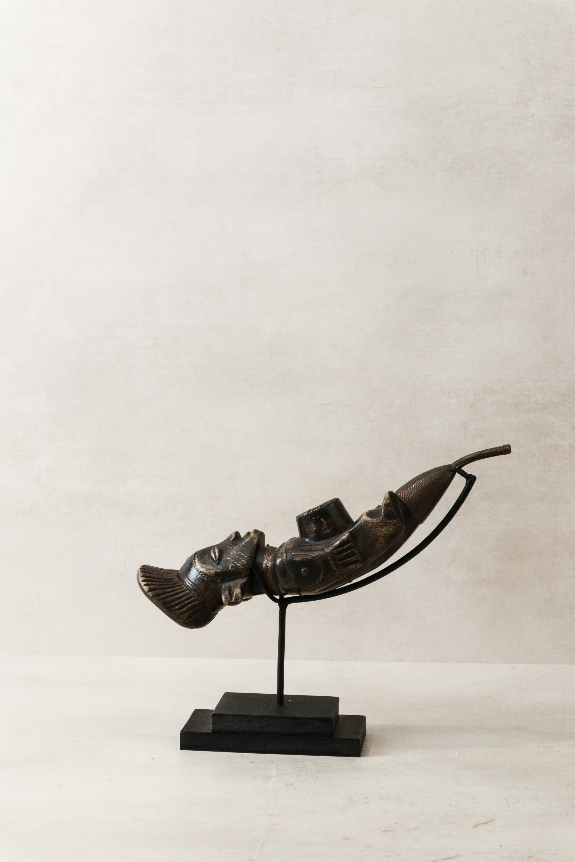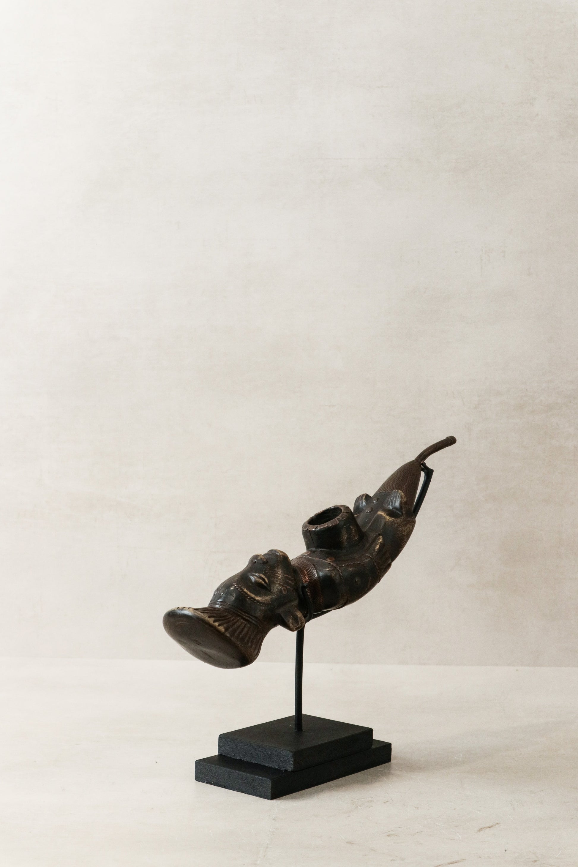 Introducing the "Vintage Luba Pipe," a captivating piece of cultural history that transports you back in time to the heart of Africa. Handcrafted by skilled artisans of the Luba tribe, this pipe is a testament to their craftsmanship and reverence for tradition. Carved from rich, dark wood and adorned with intricate patterns and symbols, each pipe tells a story of heritage and ritual.