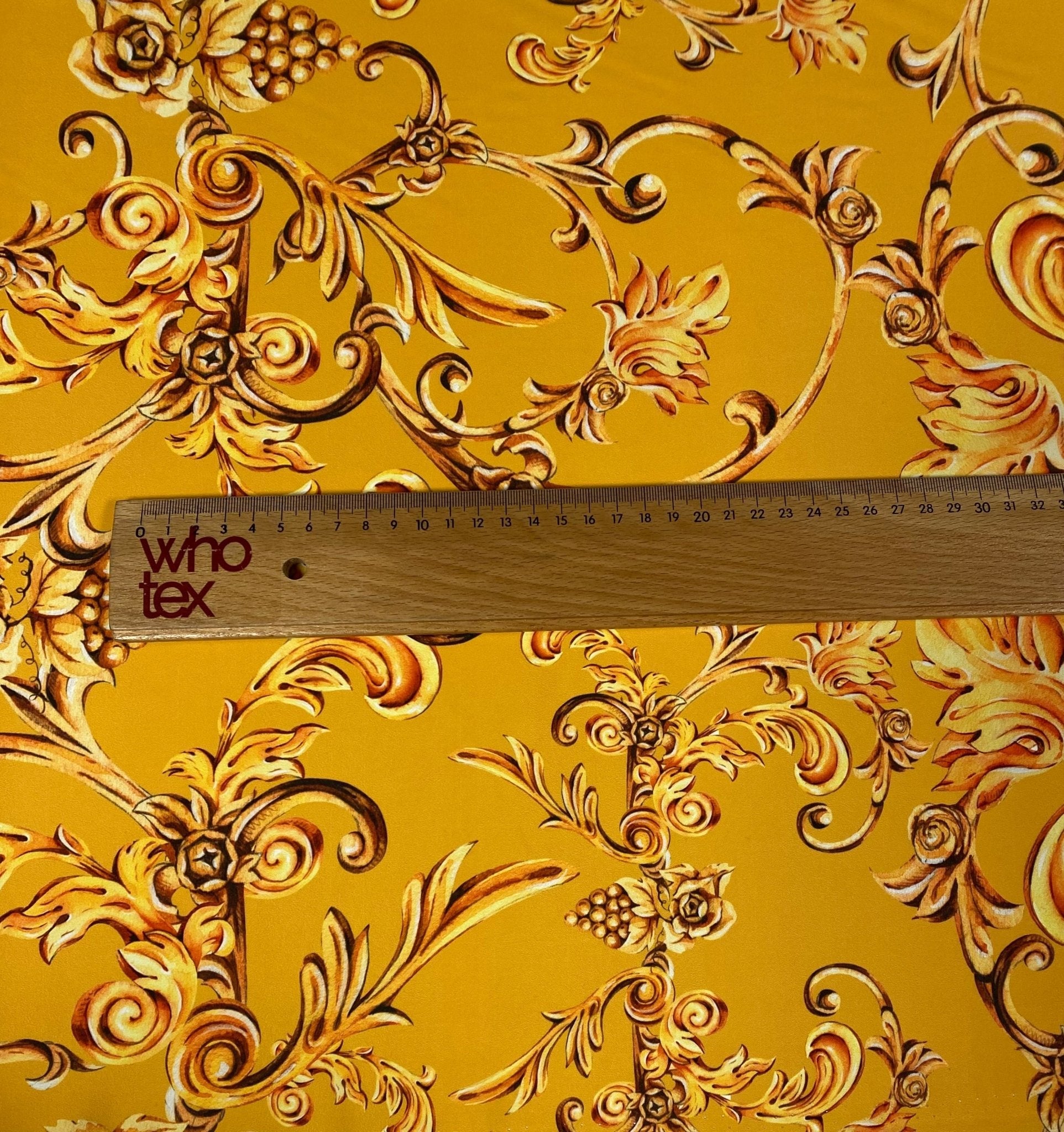 Luxury Baroque Floral Crepe Fabric by the Metre – Golden Yellow