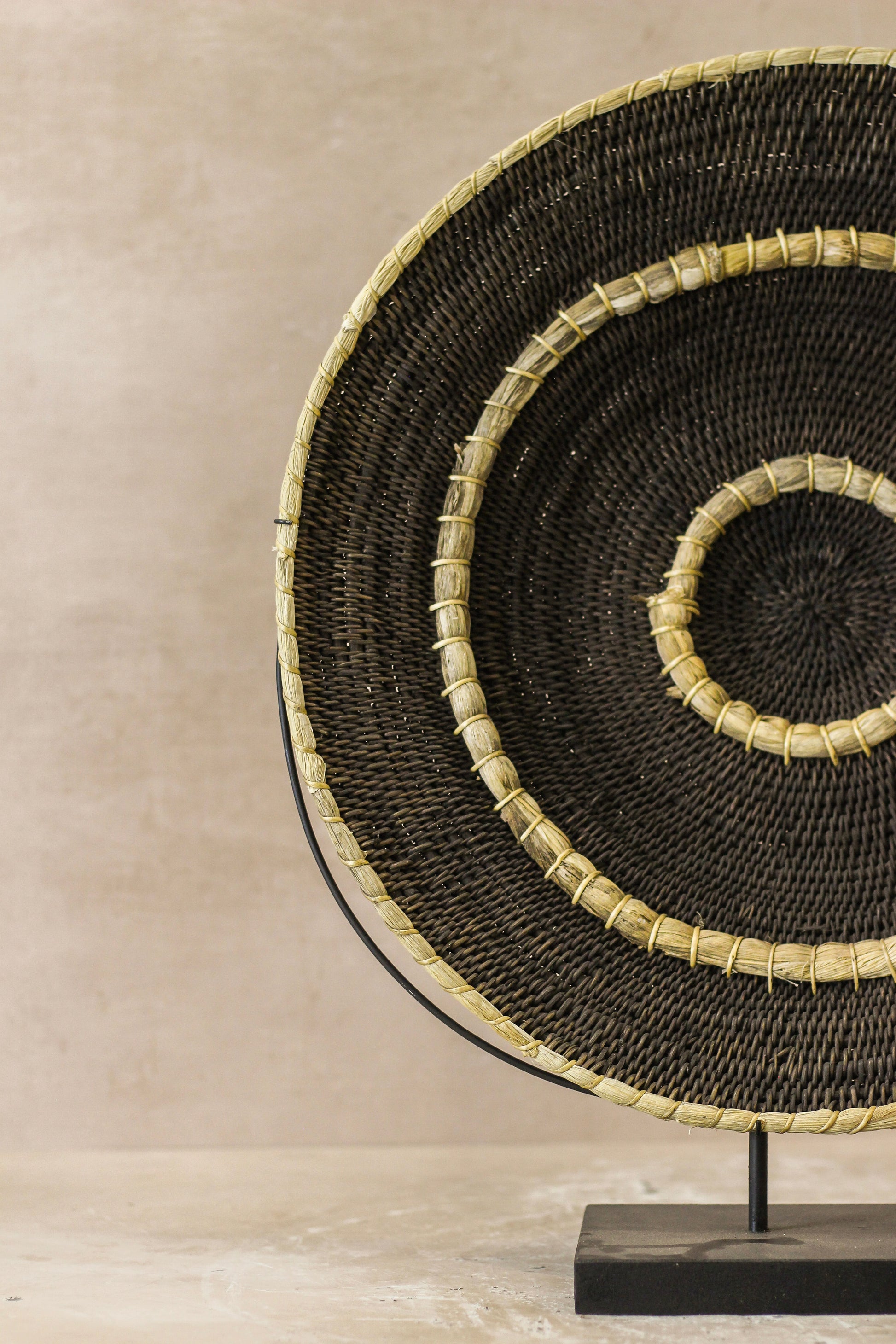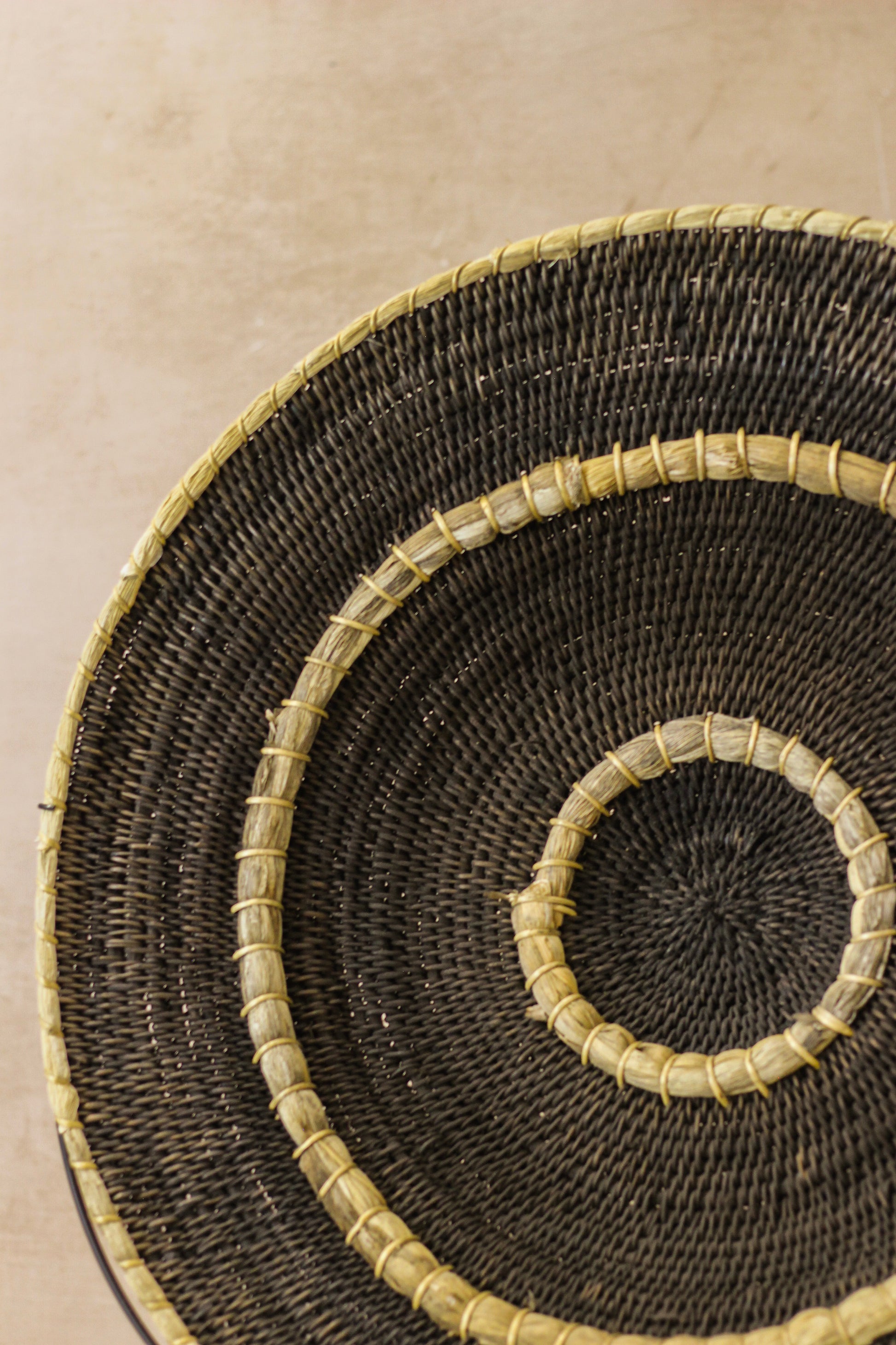 Historic Details: Makenge baskets are testament to the weaving skills of the Mbundu and Losi people of Zambia. They are original pieces that have been used to sift the grains used in cooking. The originality of these baskets show some grains embedded in the weave on some of our collections.