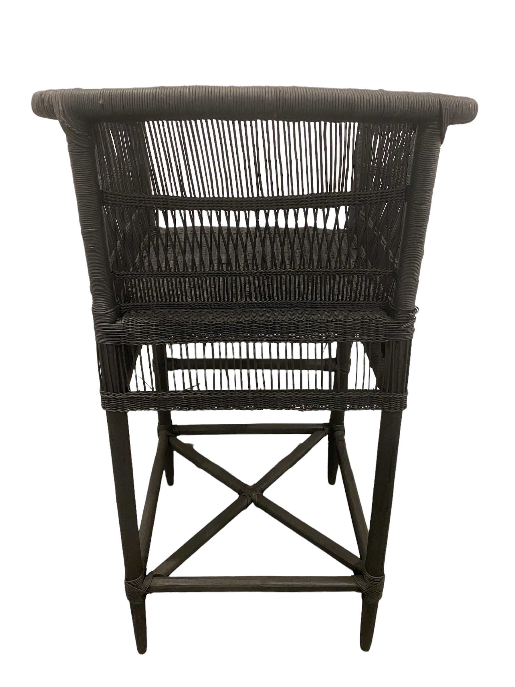 Malawi chairs are handmade using rattan strips, which are woven into intricate patterns along the sides of the chairs and the seat. Rather than using glue or nails which is common in European design, makers secure the strips with special knots. To create a curved barrel back, they temporarily insert spare parts from cars and bicycles that guide them as they work.