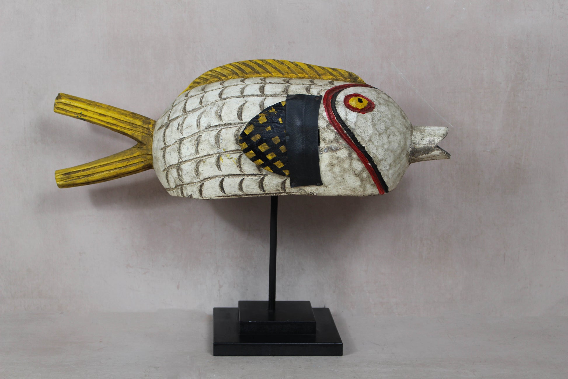Bozo fish are hand crafted by Bozo artisans in Mali, these river sculptures are hand-carved from wood, painted, and then antiqued through an underground smoking process.