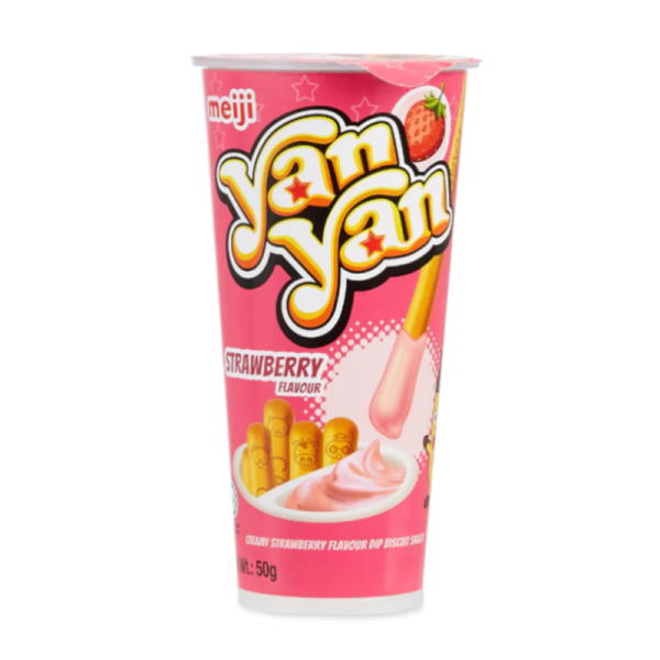 Indulge in the delicious and convenient MEIJI Yan Yan Strawberry Dip Biscuit Snack. Each pack contains crispy biscuit sticks and strawberry-flavored cream for a perfect snack anytime, anywhere. Enjoy the satisfying combination of savory and sweet flavors in every bite, with 50g of pure snacking pleasure. Perfect for on-the-go or as a tasty treat at home.