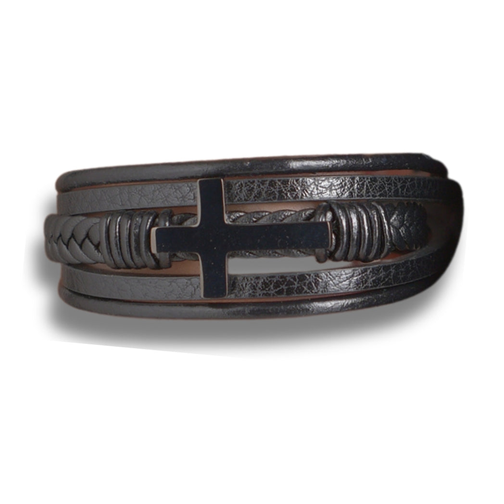 Men's Black Leather Cross Bracelet | Ideal Birthday or Christmas Gift