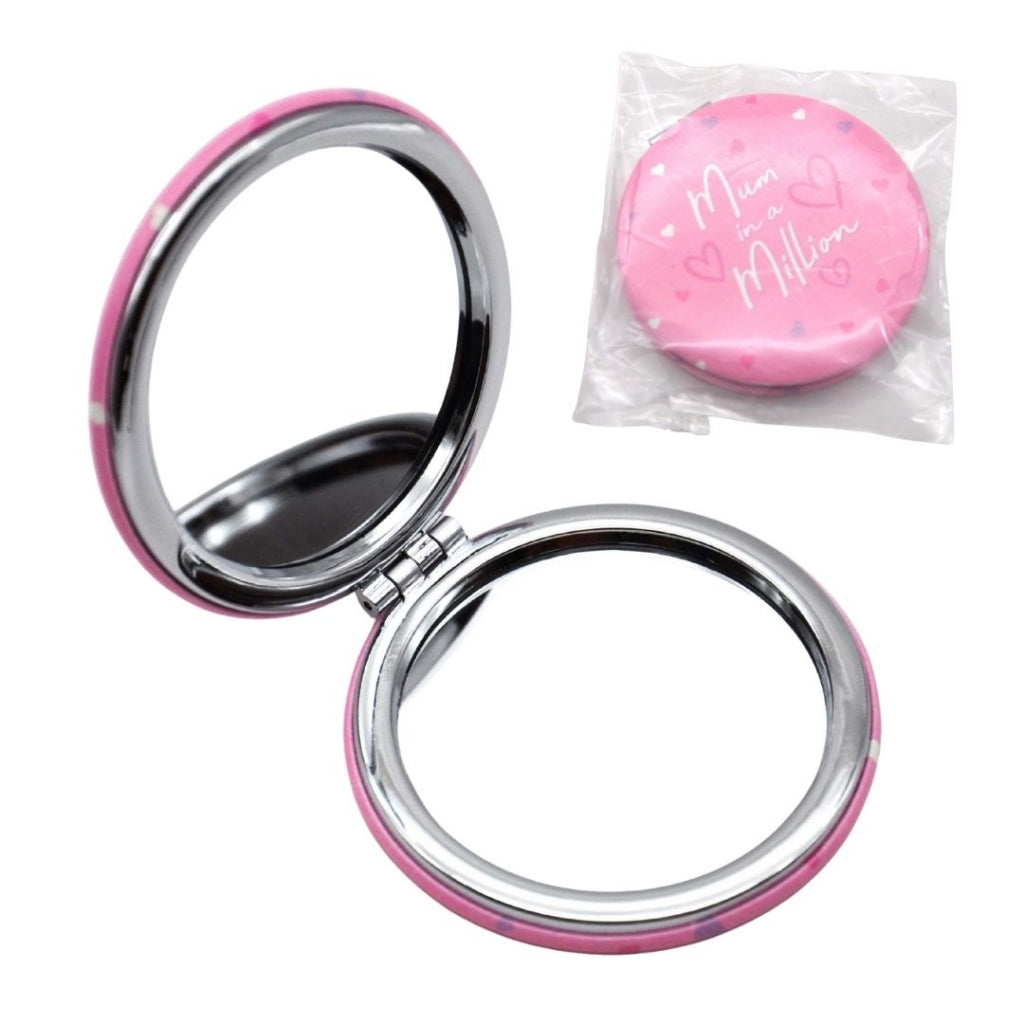 Treat Mum to a thoughtful and practical keepsake with this beautiful Mum In A Million Compact Mirror. Featuring a soft pink design with the heartfelt message "Mum in a Million" and delicate heart details, this stylish pocket mirror makes the perfect Mother's Day gift, birthday present, or small token of appreciation.