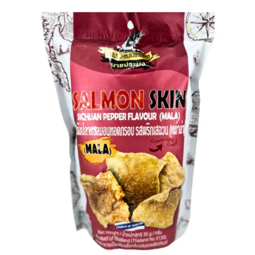 This 35g pack of NAI PRAMONG Salmon Skin Mala offers a delicious and nutritious snack option. Made from real salmon skin, it's high in protein and Omega-3s. Perfect for on-the-go snacking or as a topping for your favorite dishes.