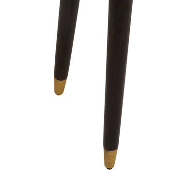 Its rich brown finish highlights the unique grain of the wood, while the gold-tipped legs and inlays provide a luxurious accent.