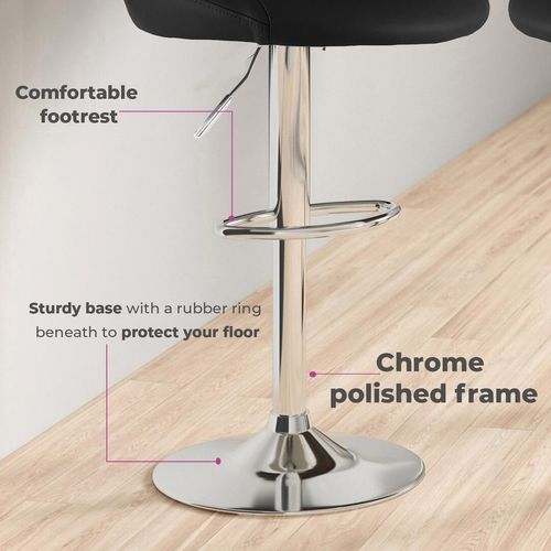 The highly polished frame is constructed out of strong chrome so offers plenty of sturdiness and there are footrests near the base for an enjoyable seating experience. Additionally, they are height adjustable so you can position them exactly where you want them! Also includes the rubberised finish underneath the chrome base guaranteeing not to scratch your tiles or wood.