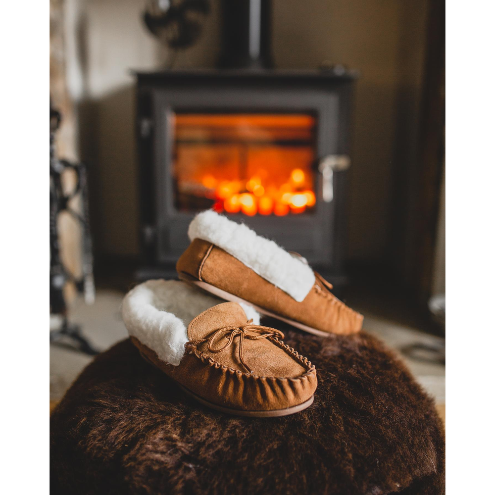 Nordvek Womens Sheepskin Suede Moccasin Slippers With Rubber Sole - 417-100