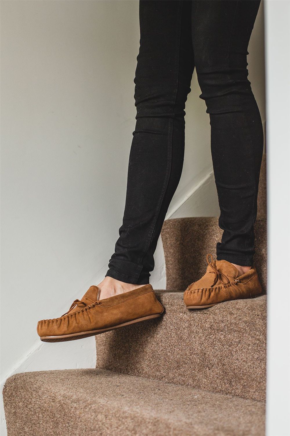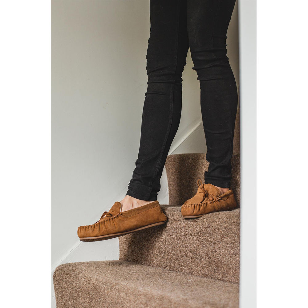 Nordvek Womens Sheepskin Suede Moccasin Slippers With Rubber Sole - 430-100