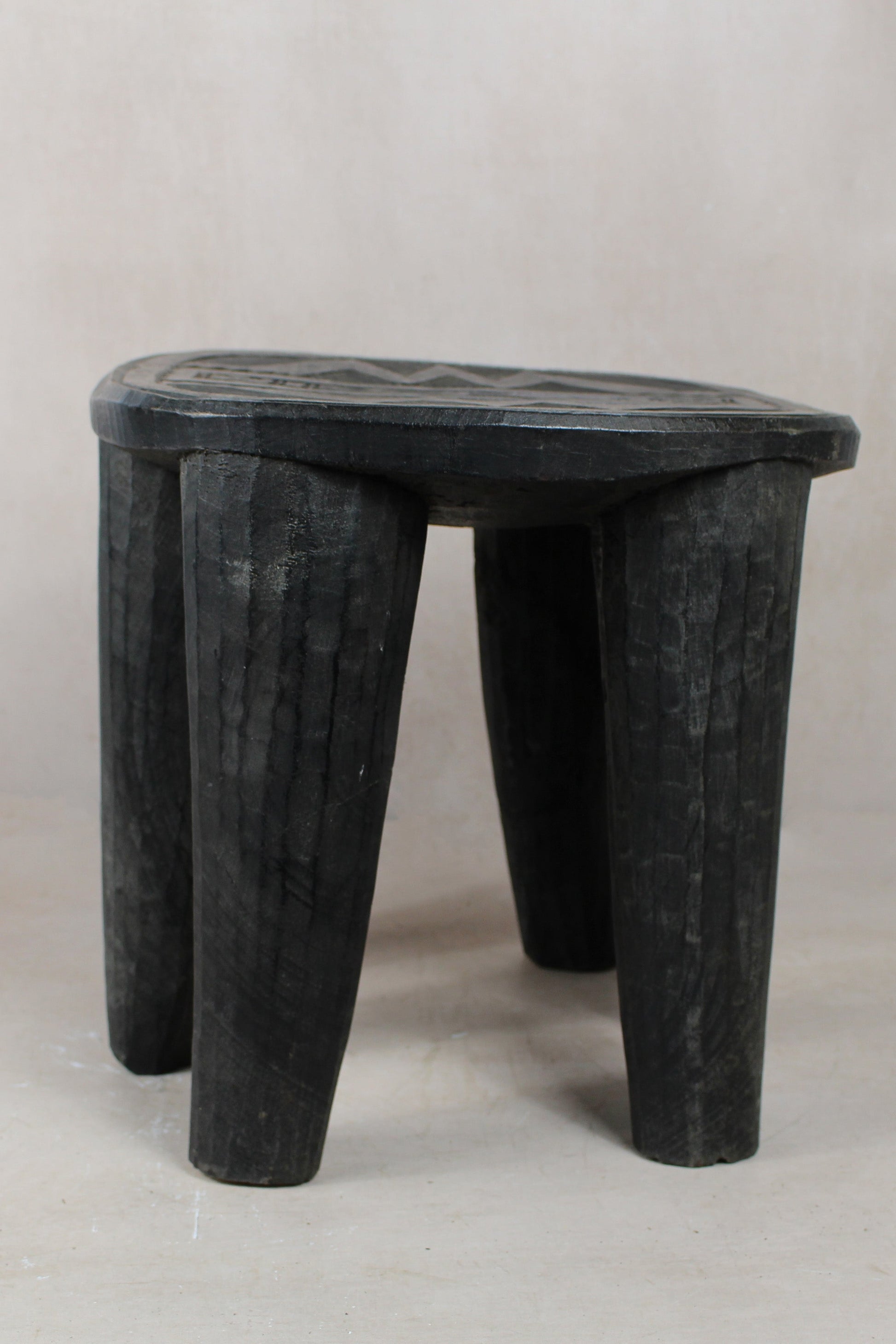 Each stool is a sculptural feat, hand-carved from a single, seamless block of indigenous hardwood. The geometric precision of the legs and the subtle, incised patterns on the surface reflect a design language unique to the Nupe people. Having been weathered by time and restored with care, this piece retains "perfect imperfections"—a historical patina that tells a story of communal life and the passage of time. A truly one-of-a-kind functional art piece for the modern, soulful home.