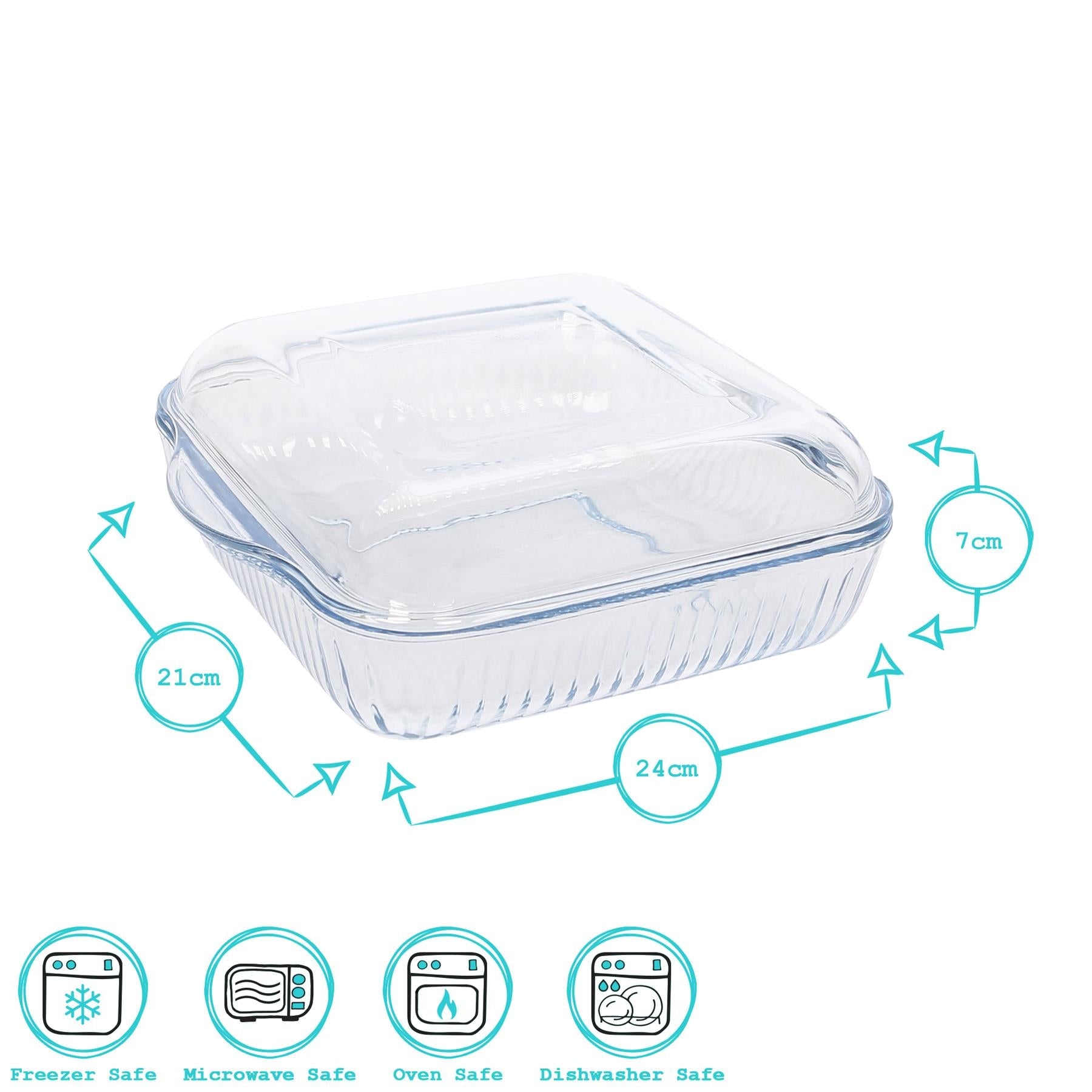 Optical Square Glass Oven Dish with Lid - 24cm x 21cm