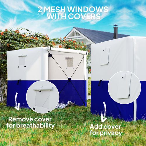 ● Two mesh windows to bring fresh air and light inside, with covers for privacy when needed