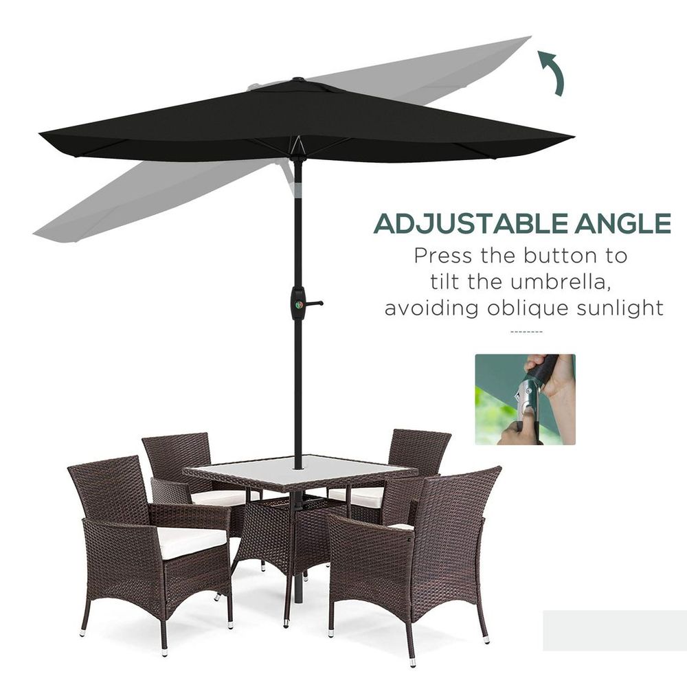 Outsunny 2 x 3(m) Garden Parasol Rectangular Market Umbrella w/ Crank Black