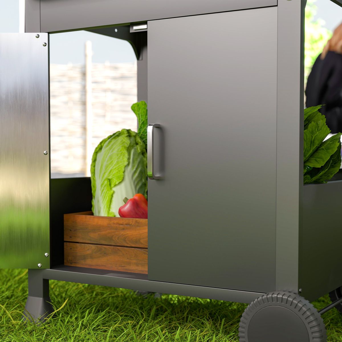 ● Cylinder cabinet stores gas safely, side racks for utensils