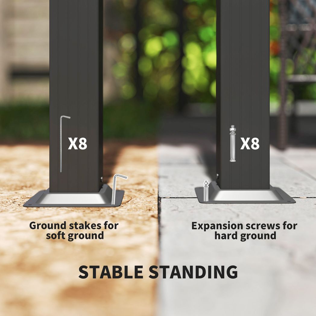 ● Ground stakes and expansion screws included to pin to the ground