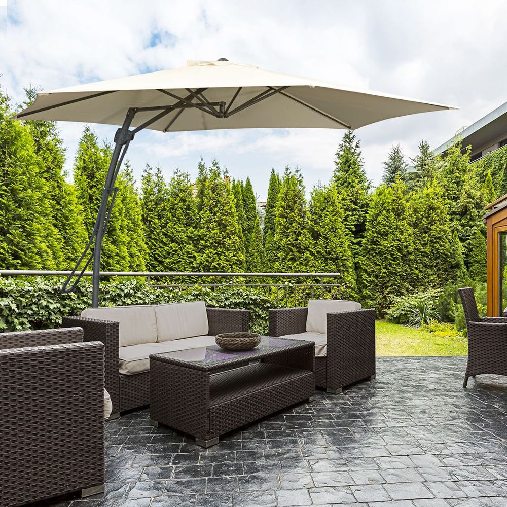 Outsunny 3m Cantilever Parasol - Easy Lever Crank, Metal Ribs, White