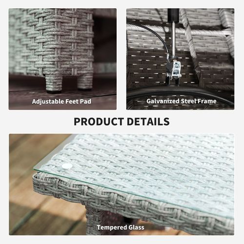 Outsunny 4 Piece Rattan Garden Furniture Set with Sofa, Glass Table, Blue