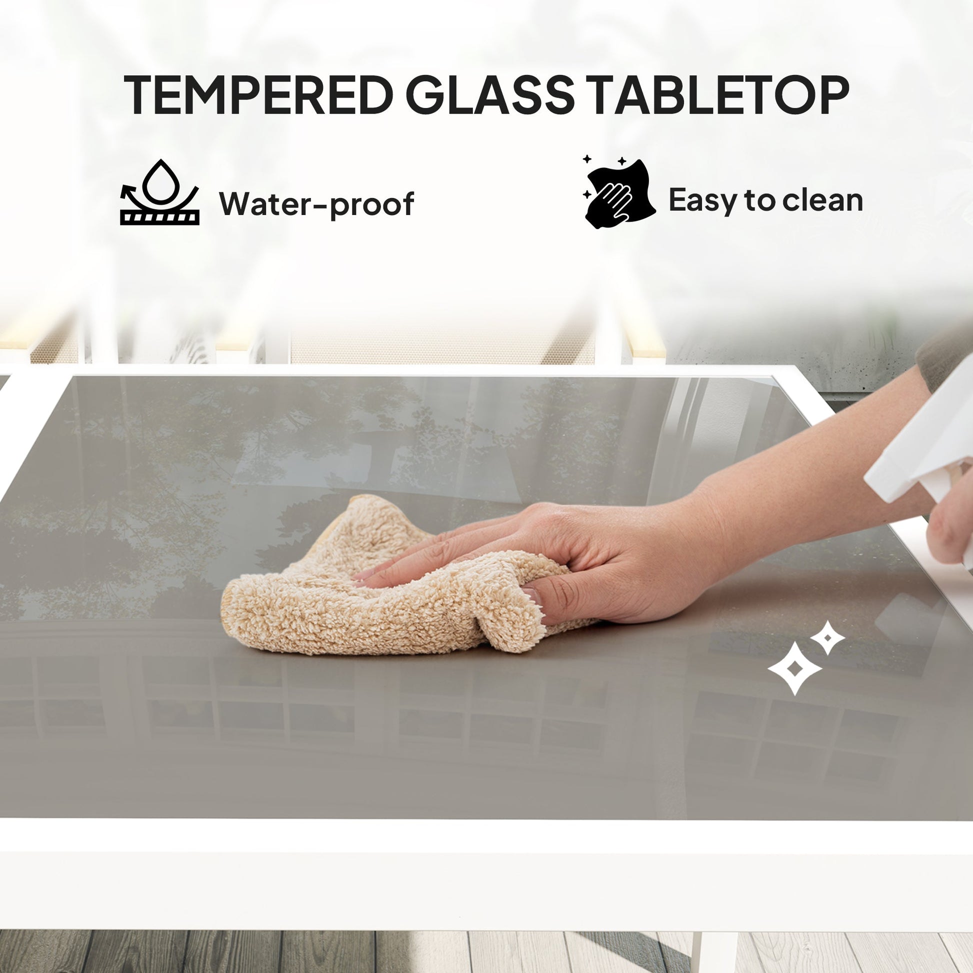 ● Tempered glass top, simplifies cleaning and resists water