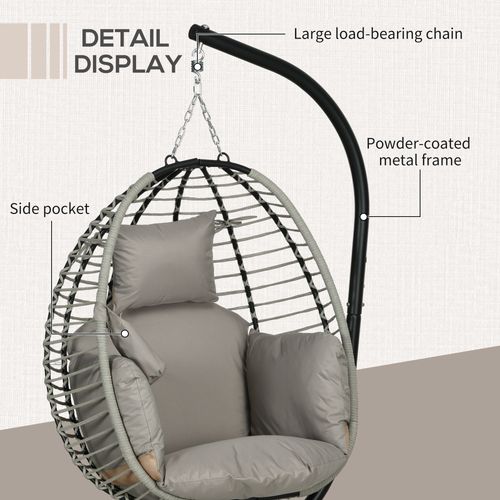 Outsunny Hanging Swing Chair with Thick Cushion, Patio Hanging Chair, Grey