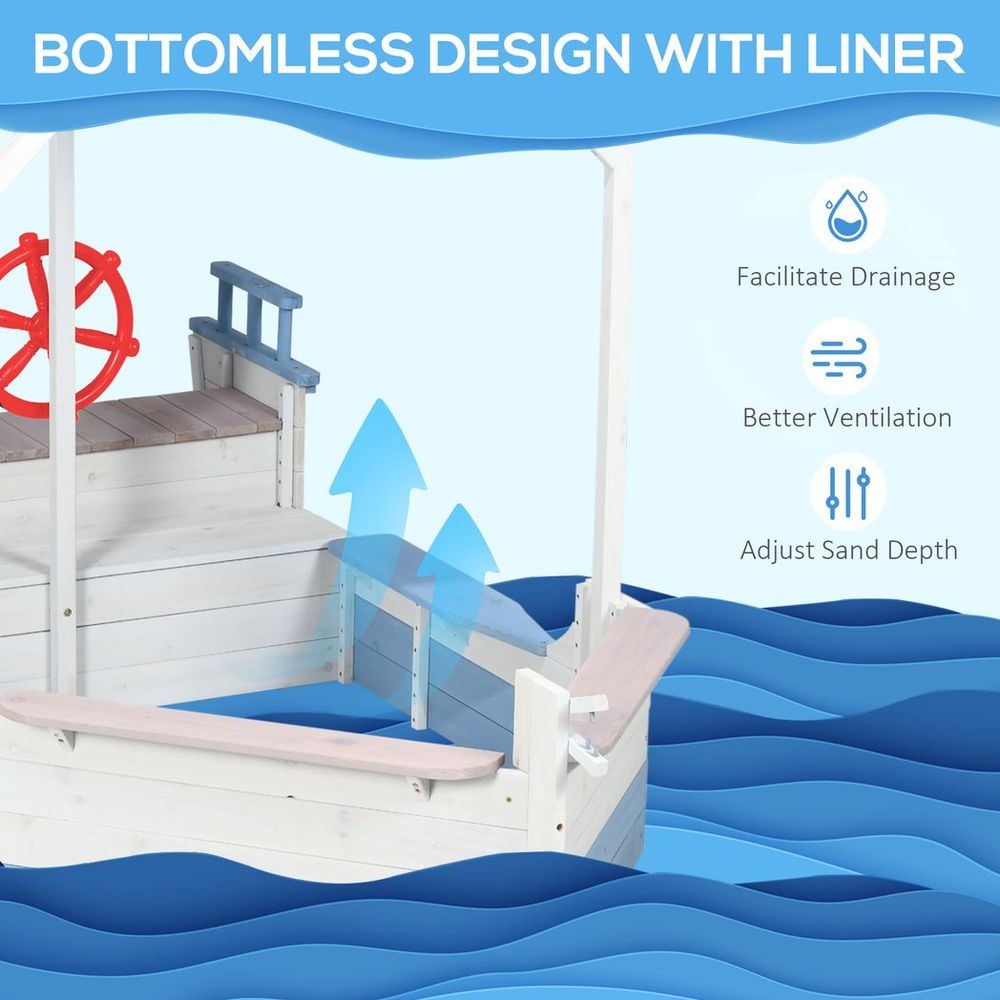 Outsunny Kids Wooden Sand Pit w/ UV Protections, Canopy, for Ages 3-8 Years