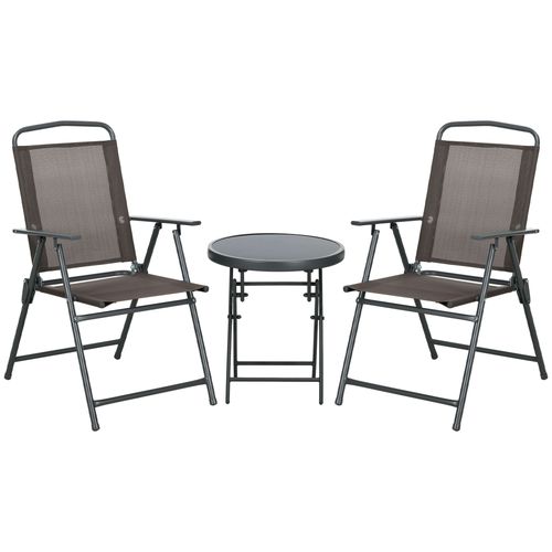 Outsunny Patio Bistro Set Folding Chairs & Coffee Table for Balcony, Brown