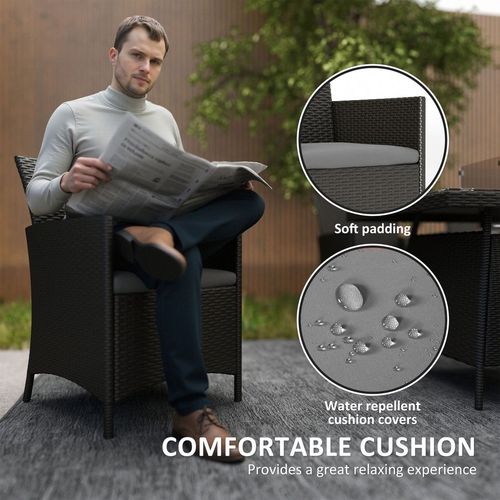 Outsunny Rattan Dining Set with Fire Pit Table and Armchairs, Black