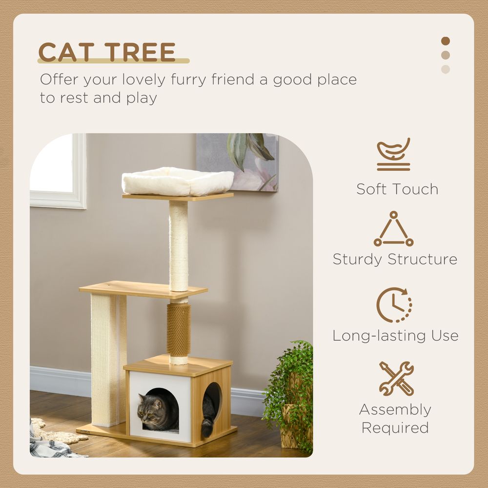 PawHut 114cm Cat Tree - Indoor Cats Scratching Posts, Cat House, Cat Bed. High-Quality & Durable!