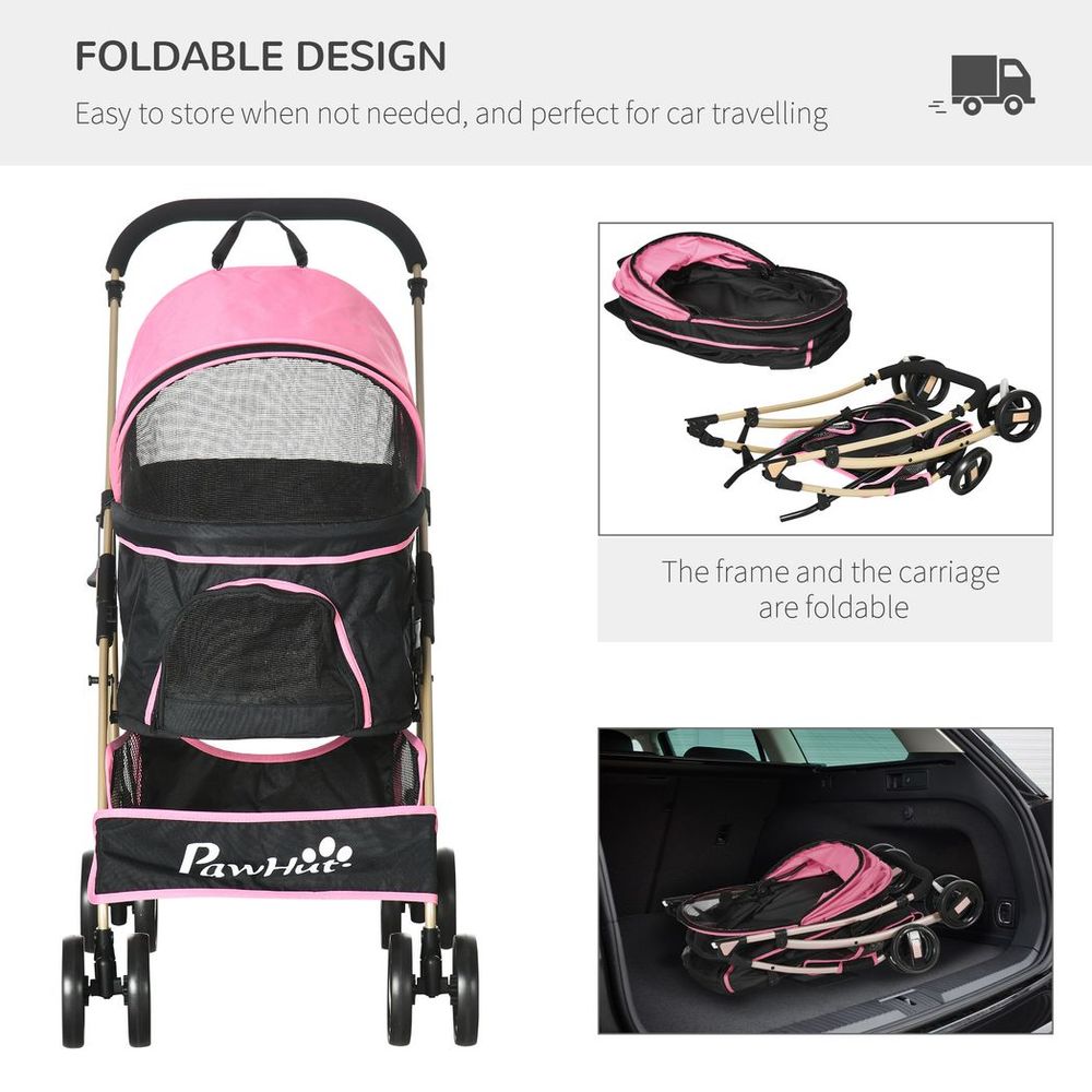 PawHut 3 In 1 Pet Stroller, Detachable Dog Cat Travel Carriage - Pink