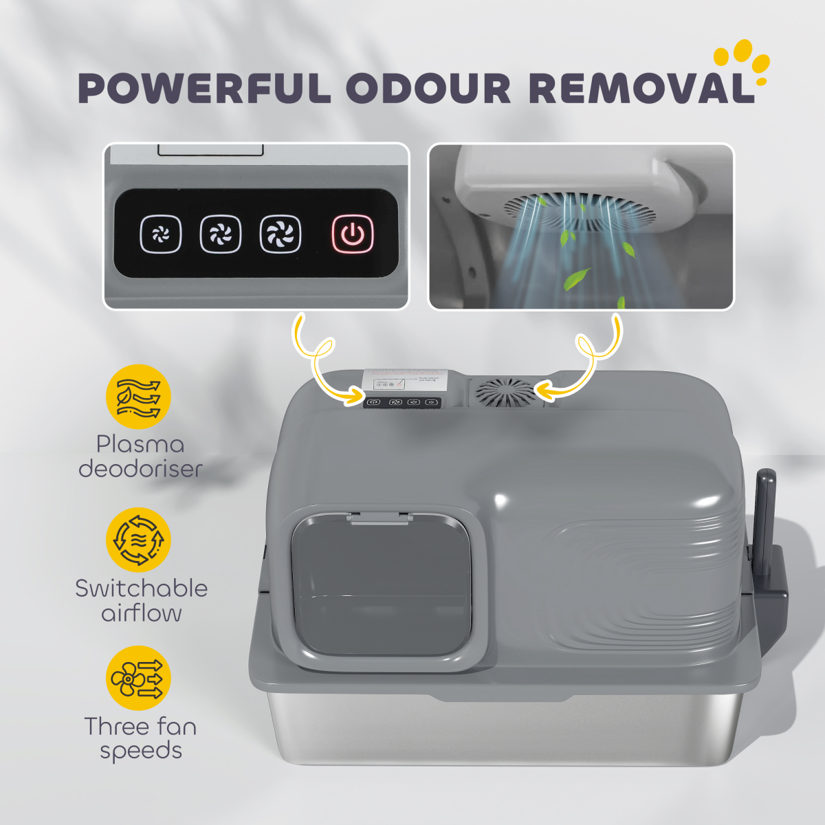 PawHut 65L XL Stainless Steel Litter Tray with Plasma Deodoriser System