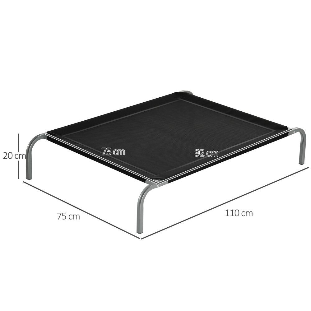 PawHut Elevated Pet Bed Cooling Raised Cot Style Bed for Large Medium Sized Dogs with Non-slip Pads Steel Frame Breathable Mesh Fabric, 110 x 75 x 20 cm - Black